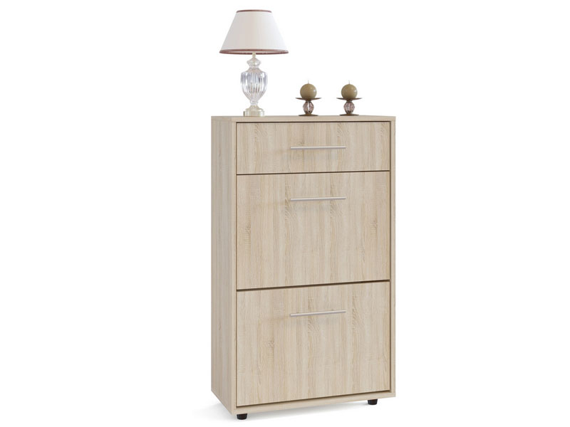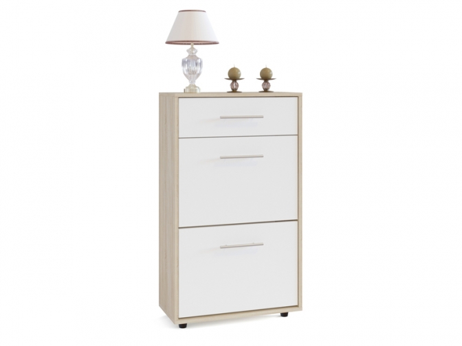Дуб Сонома / Белый (1)Шкаф под обувь ТП-2 компактная и в то же время вместительная тумба для обуви ТП-2 пригодится в любом доме. Элегантный дизайн подчеркивает функциональность этого предмета мебели, а цветовая гамма, представленная в 4-х вариантах, позволит выбрать тумбу, подходящую именно к вашему интерьеру. Выдвижной верхний ящик поможет разместить все необходимые мелочи: кремы и обувные щетки, ключи и перчатки, рожки для обуви и даже зонтик. Средний отсек разделен надвое и предназначен для правильного хранения невысокой обуви. В нижнем отделе, который также как и средний снабжен откидной дверкой, удобно разместится обувь повыше: сапоги и ботинки.