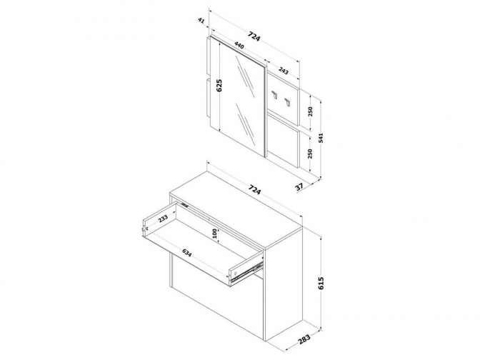 Прихожая ВШ-15 - стильный комплект из вешалки с зеркалом и компактной тумбы с ящиком и откидной секцией, сочетающий эргономику и современный дизайн. Идеальное решение для организации пространства в прихожей с ограниченной площадью.