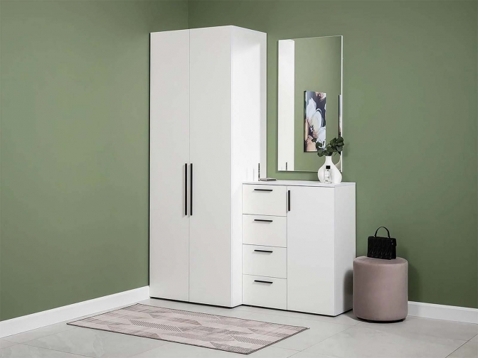 Цена указана за все элементы на фото: Комод Эйр 16.241 Белый + Зеркало Эйр 17.13 + Шкаф Эйр 13.341