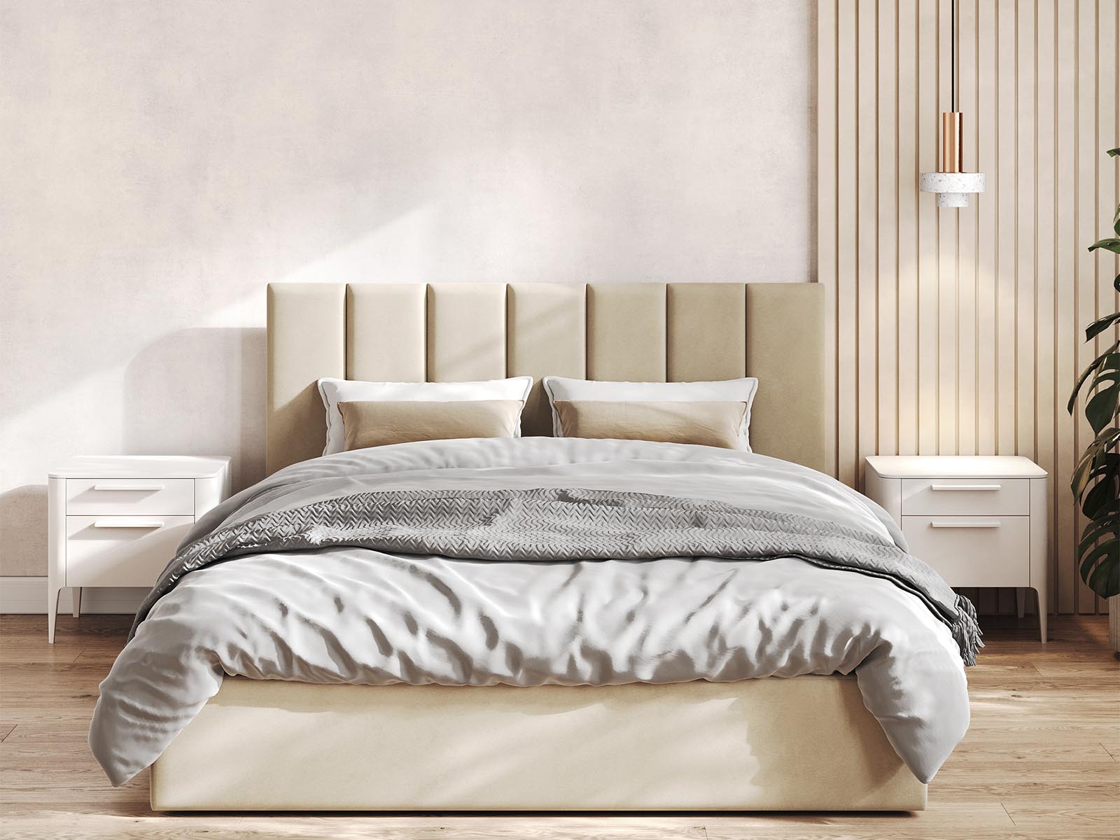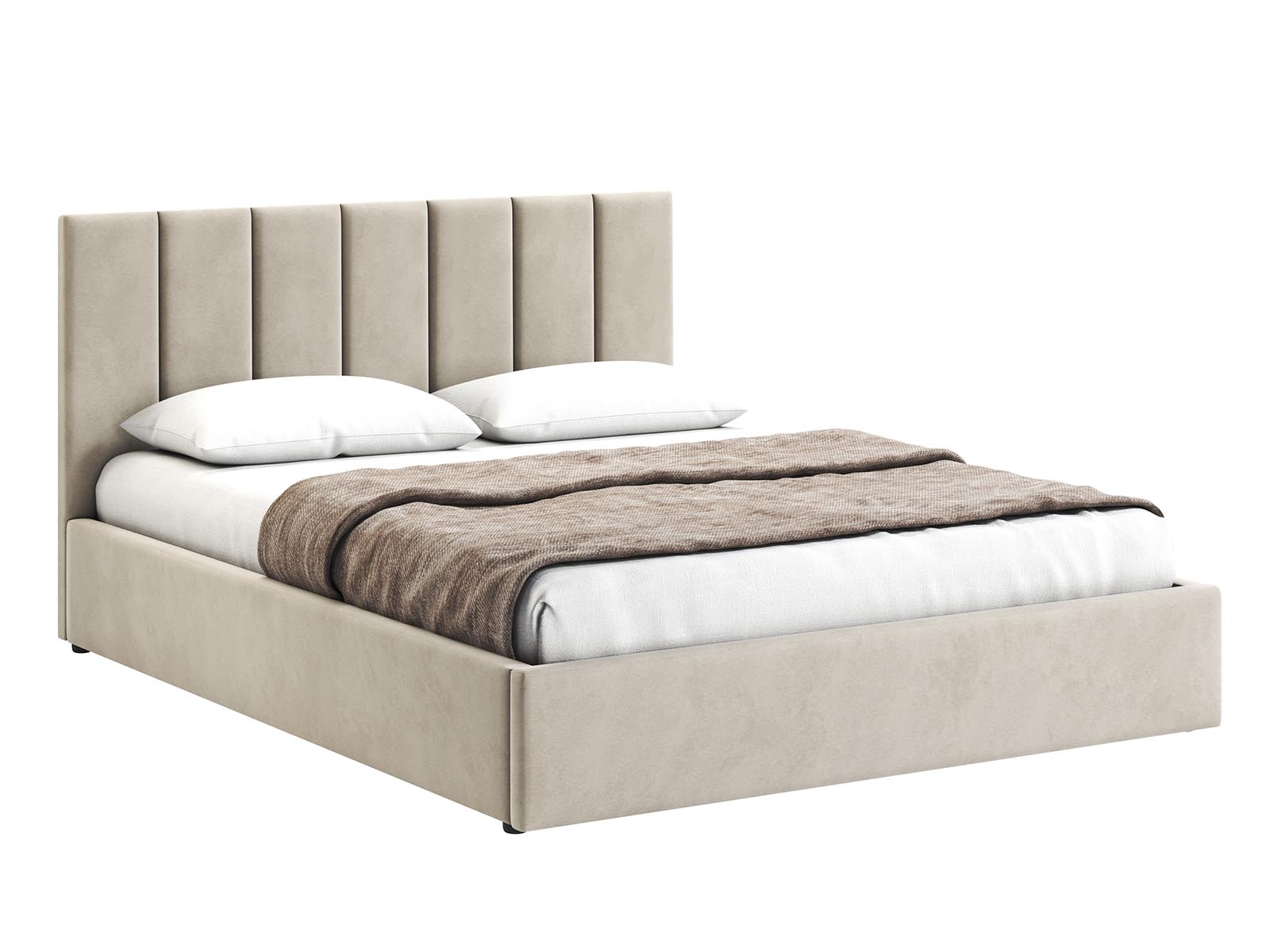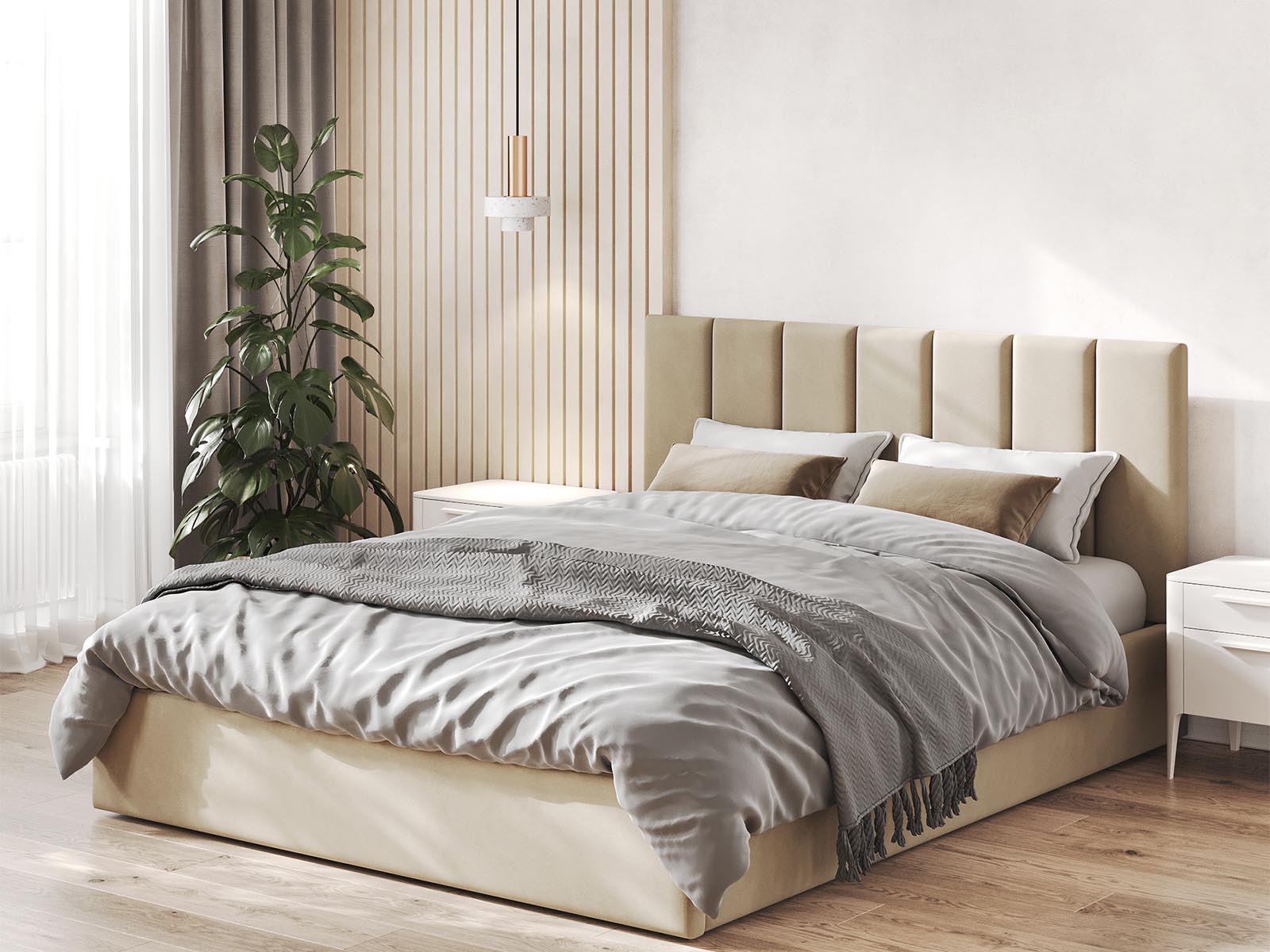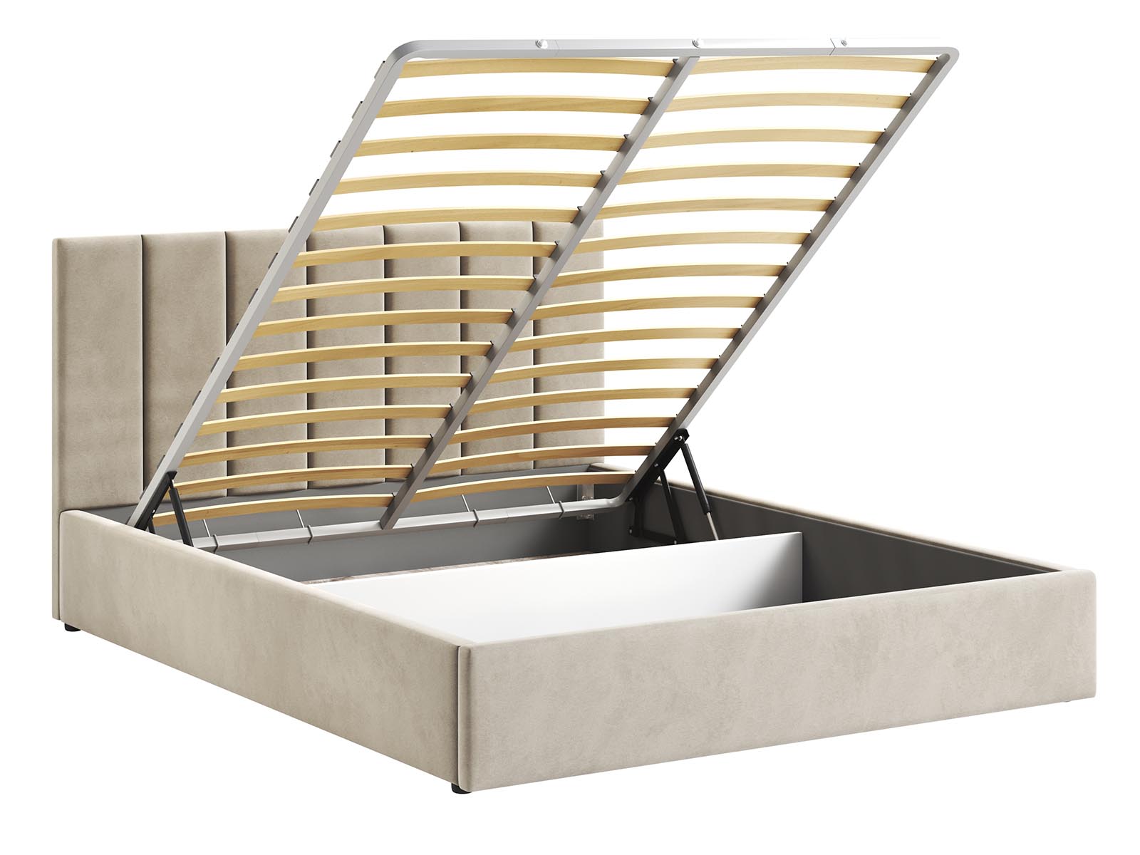 Кровать Венера-3 двуспальная с подъемным механизмом, с мягким изголовьем, ортопедическое основание, ящик для белья, велюр bingo biege