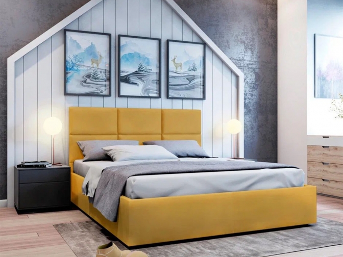 Кровать Венера-5 двуспальная с подъемным механизмом, с мягким изголовьем, ортопедическое основание, ящик для белья