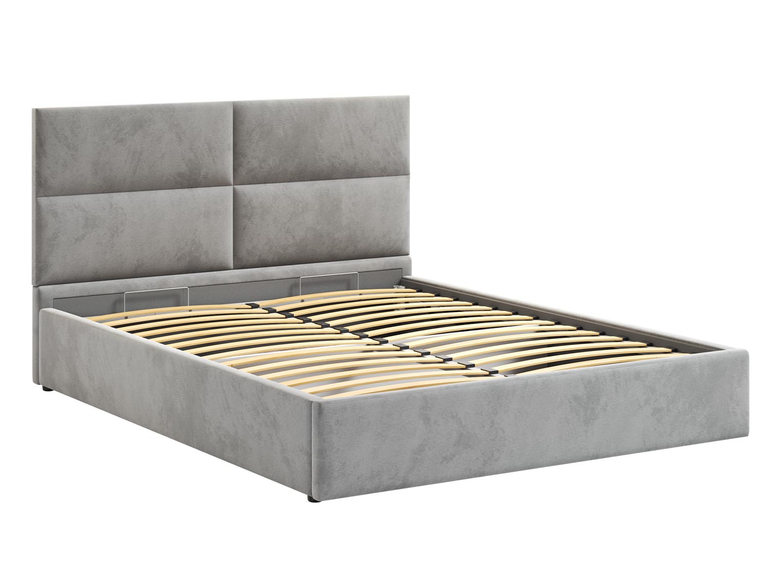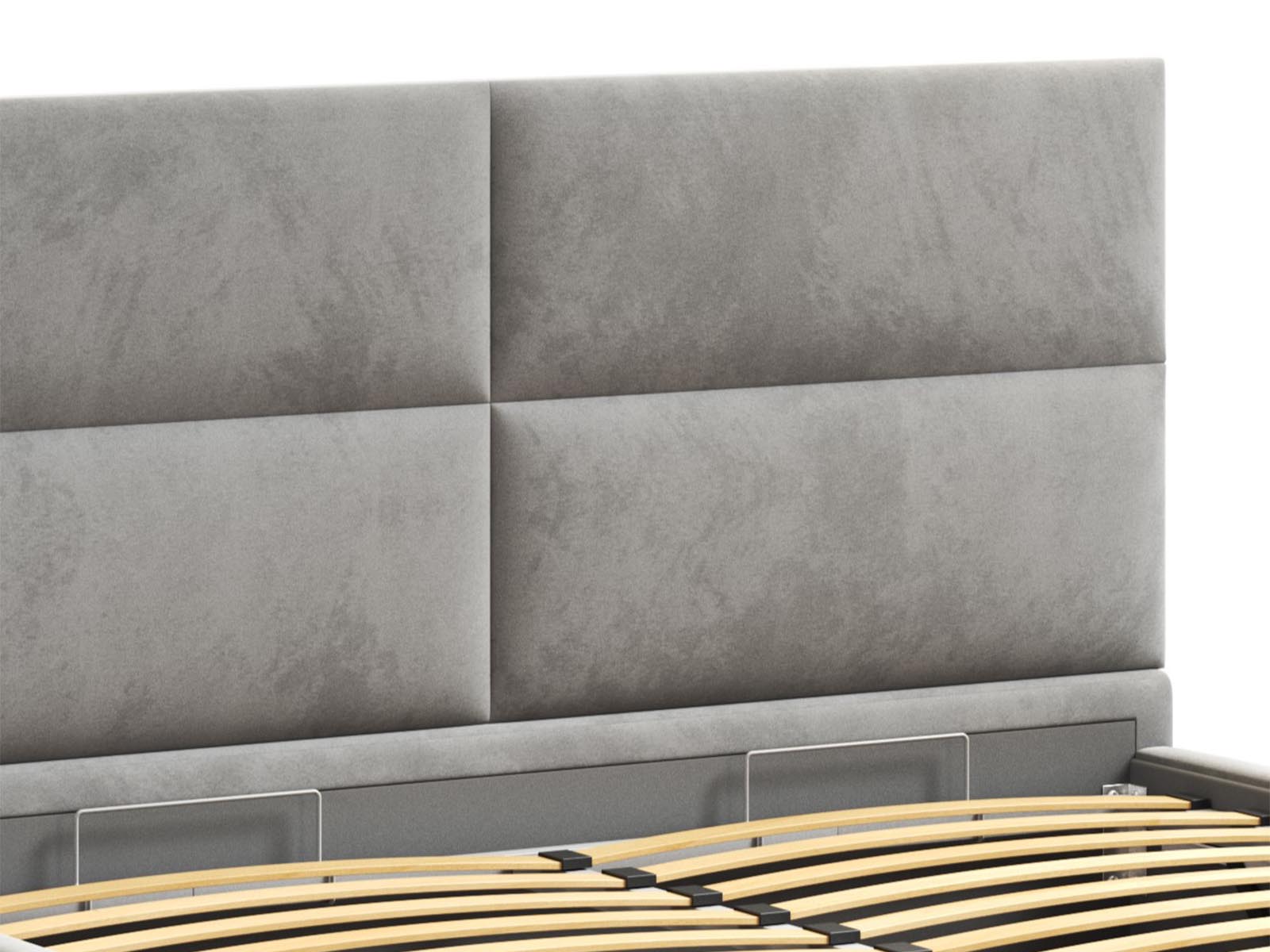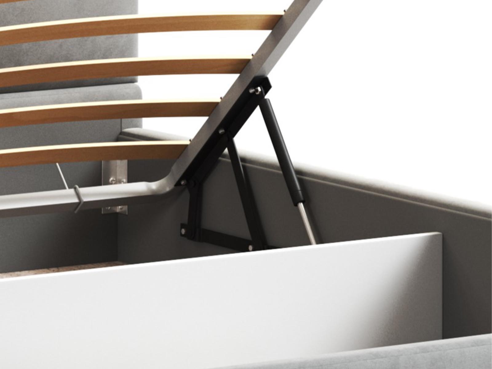 Кровать Венера-4 Гелекси двуспальная с подъемным механизмом, с мягким изголовьем, ортопедическое основание, ящик для белья, велюр bingo ash