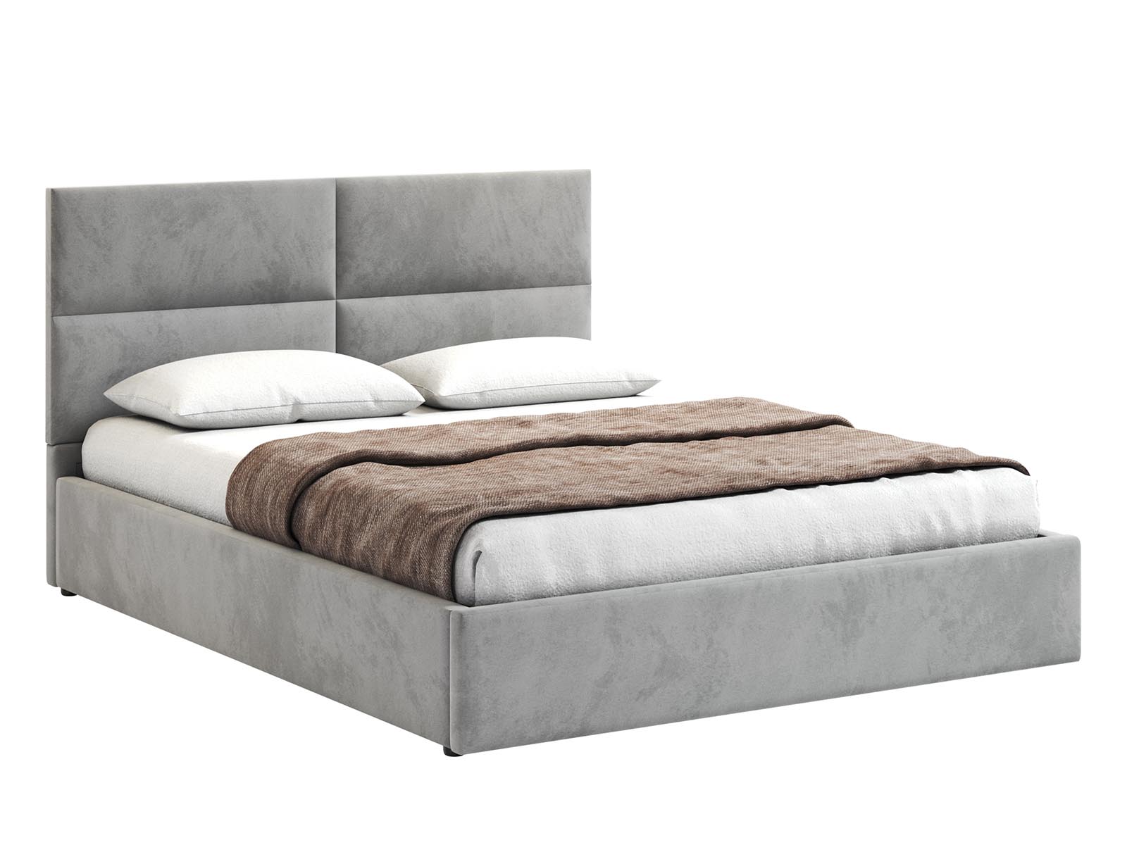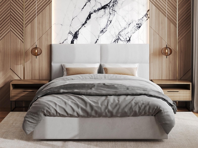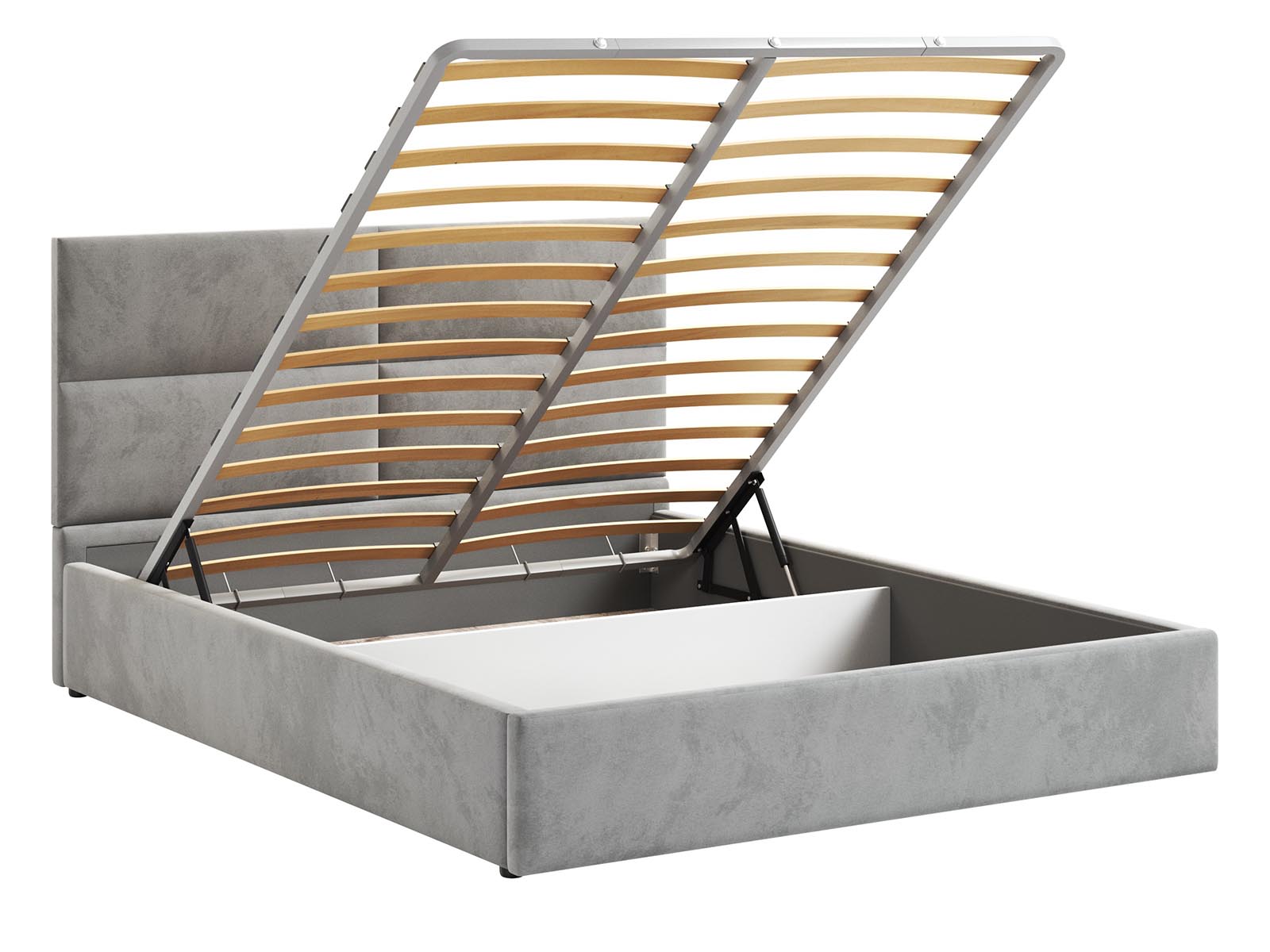 Кровать Венера-4 Гелекси двуспальная с подъемным механизмом, с мягким изголовьем, ортопедическое основание, ящик для белья, велюр bingo ash