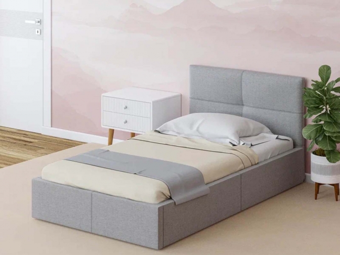Односпальная кровать Меркурий-5 с подъемным механизмом, с мягким высоким изголовьем, ортопедическое основание, ящик для белья