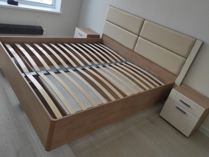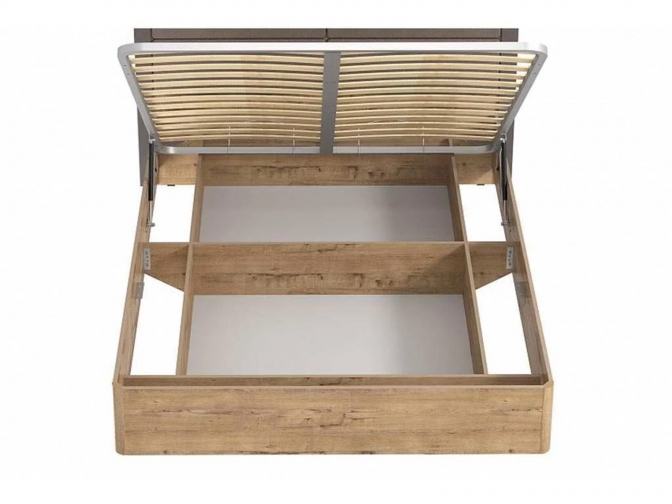 Кровать с ортопедическим основанием (ламели), подъёмным механизмом и бельевым ящиком из двух отделений