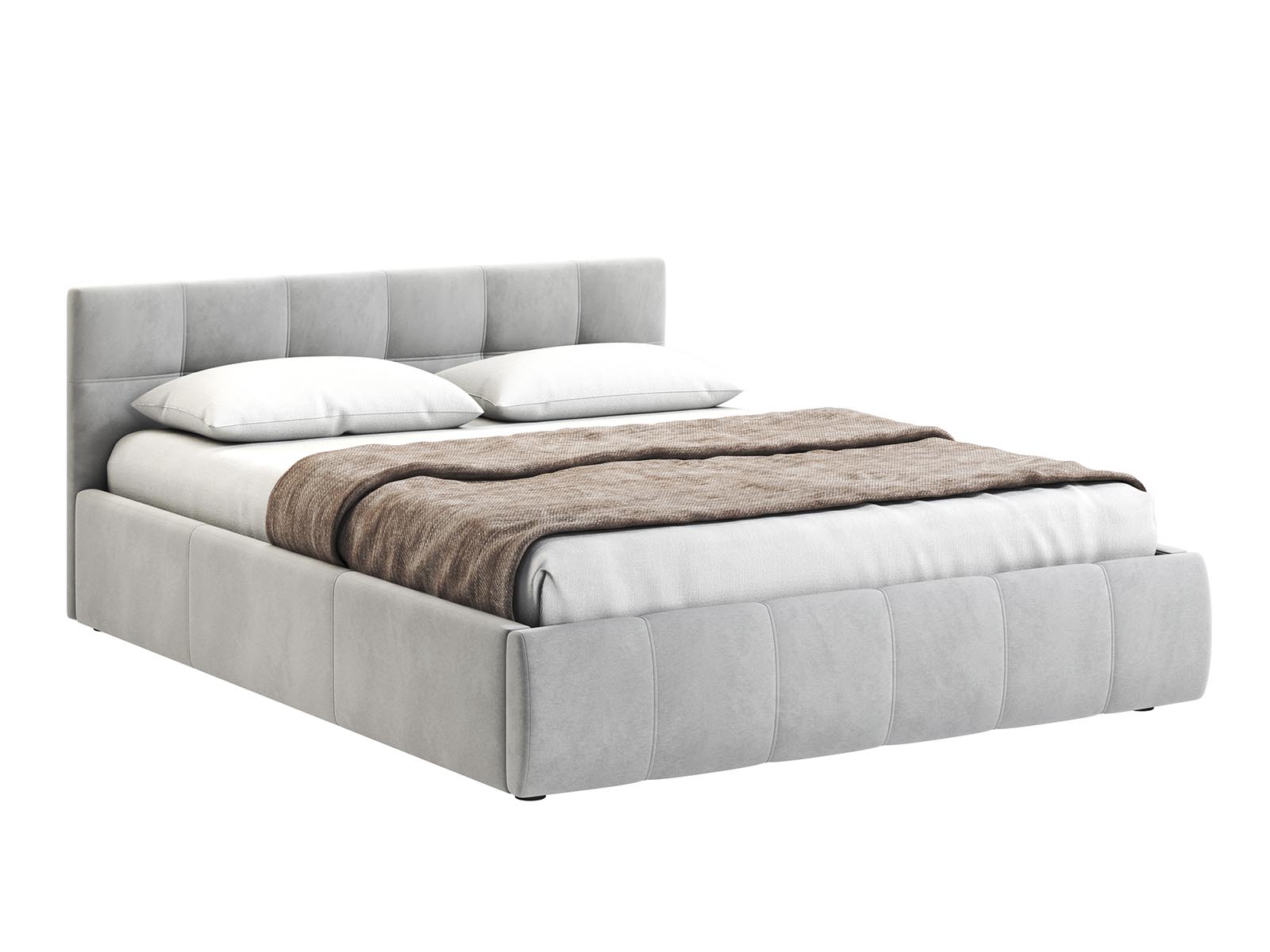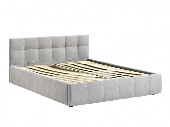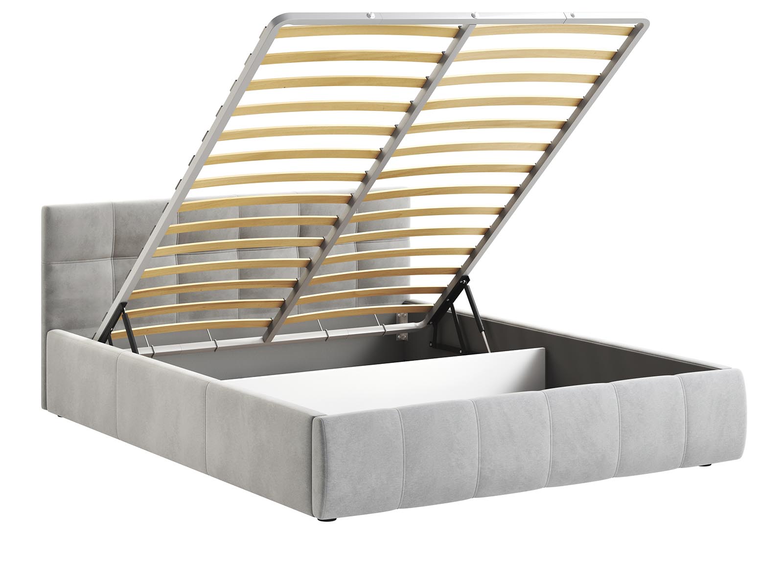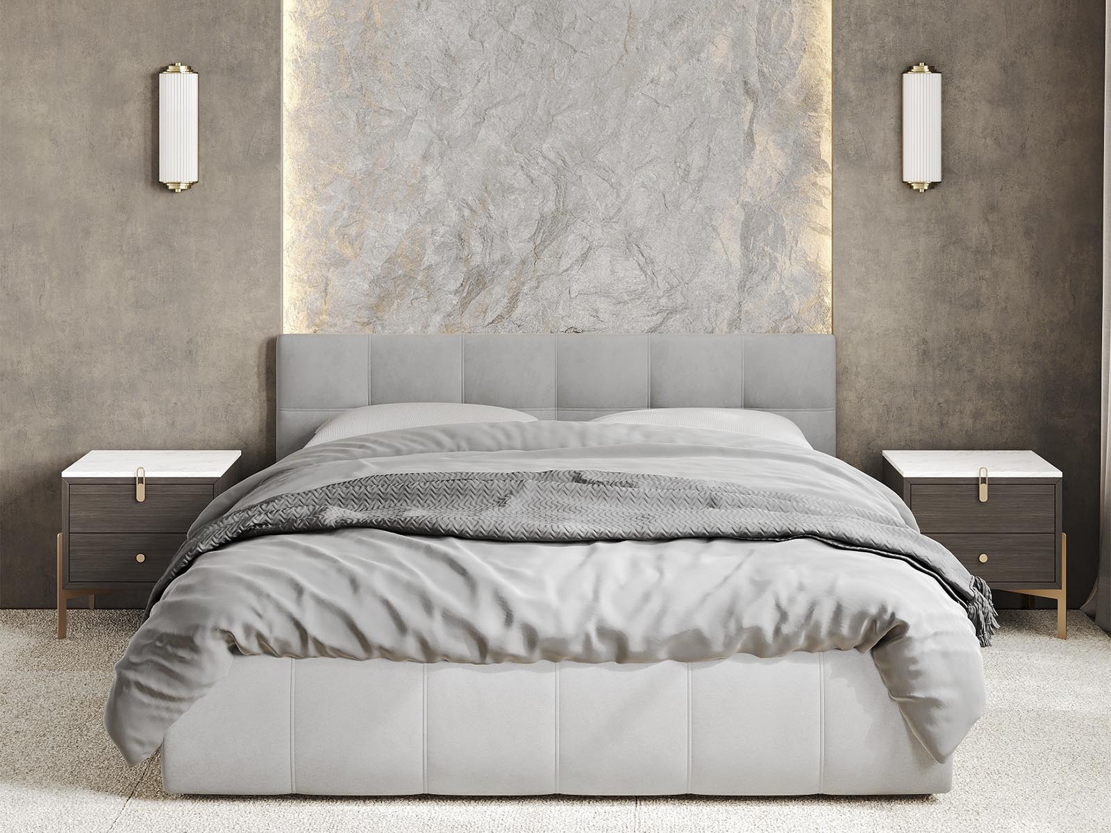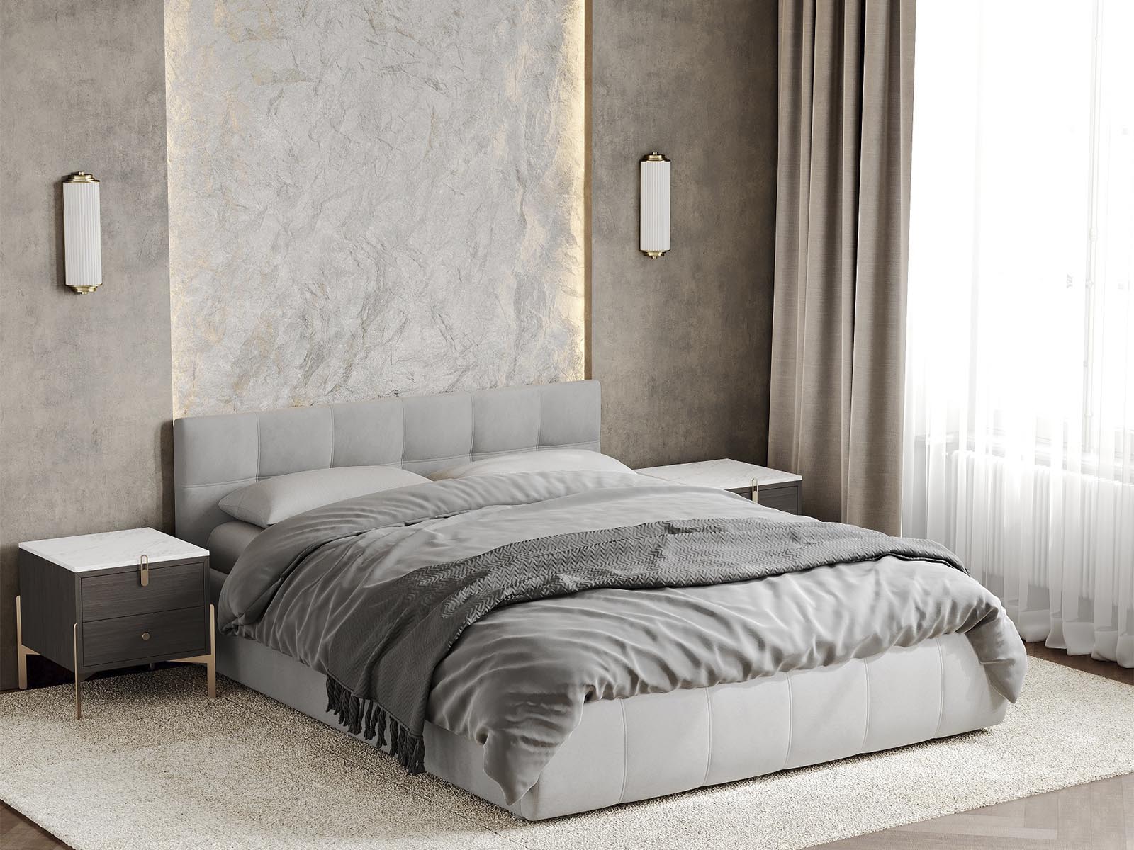 Кровать Венера-1 двуспальная с подъемным механизмом, с мягким изголовьем, ортопедическое основание, ящик для белья, велюр bingo ash