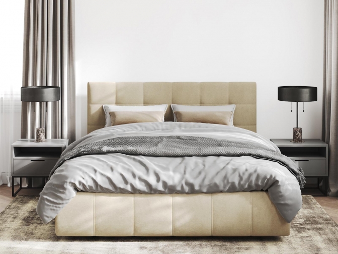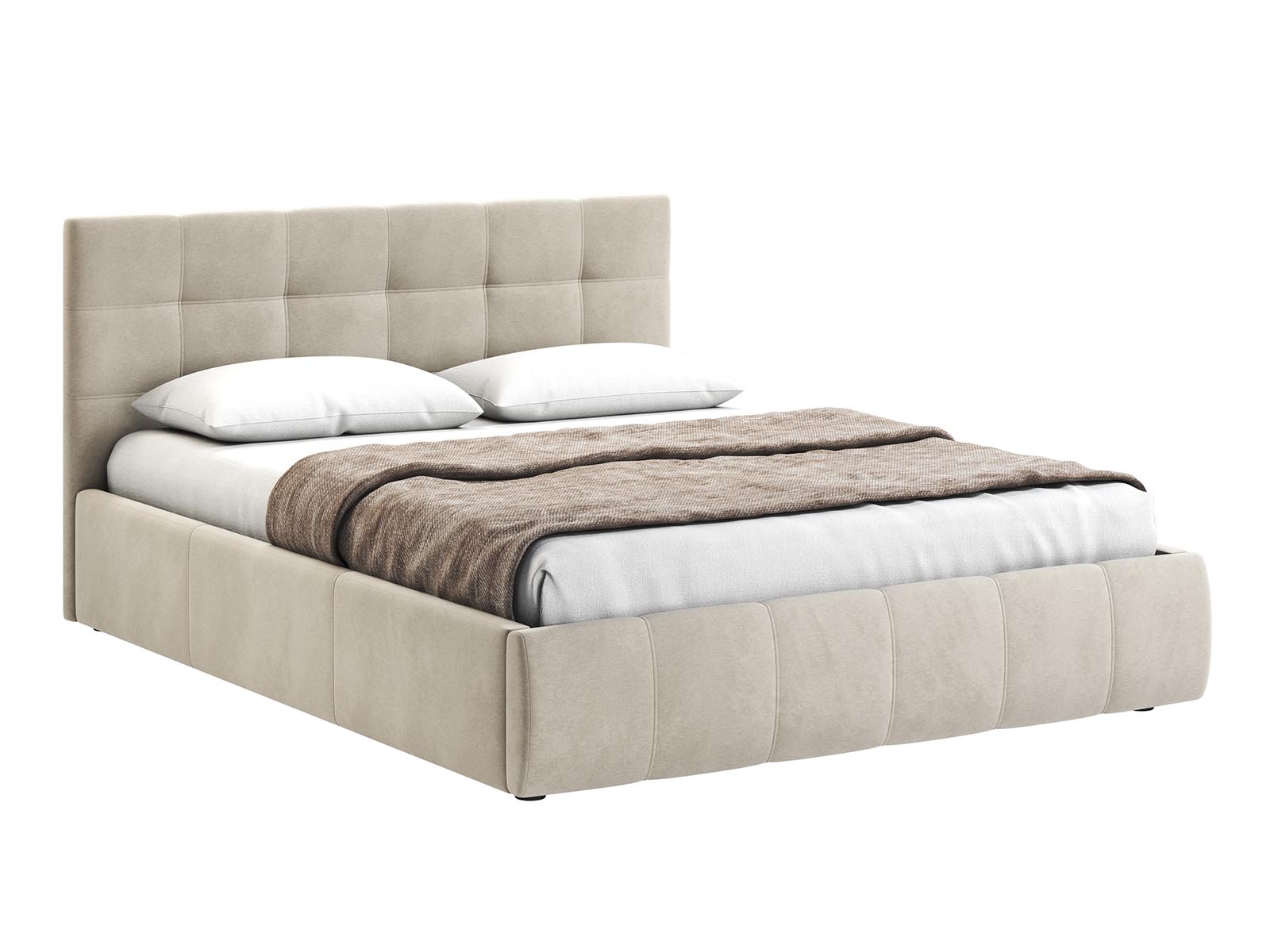 Кровать Венера-2 двуспальная с подъемным механизмом, с мягким изголовьем, ортопедическое основание, ящик для белья, велюр bingo biege