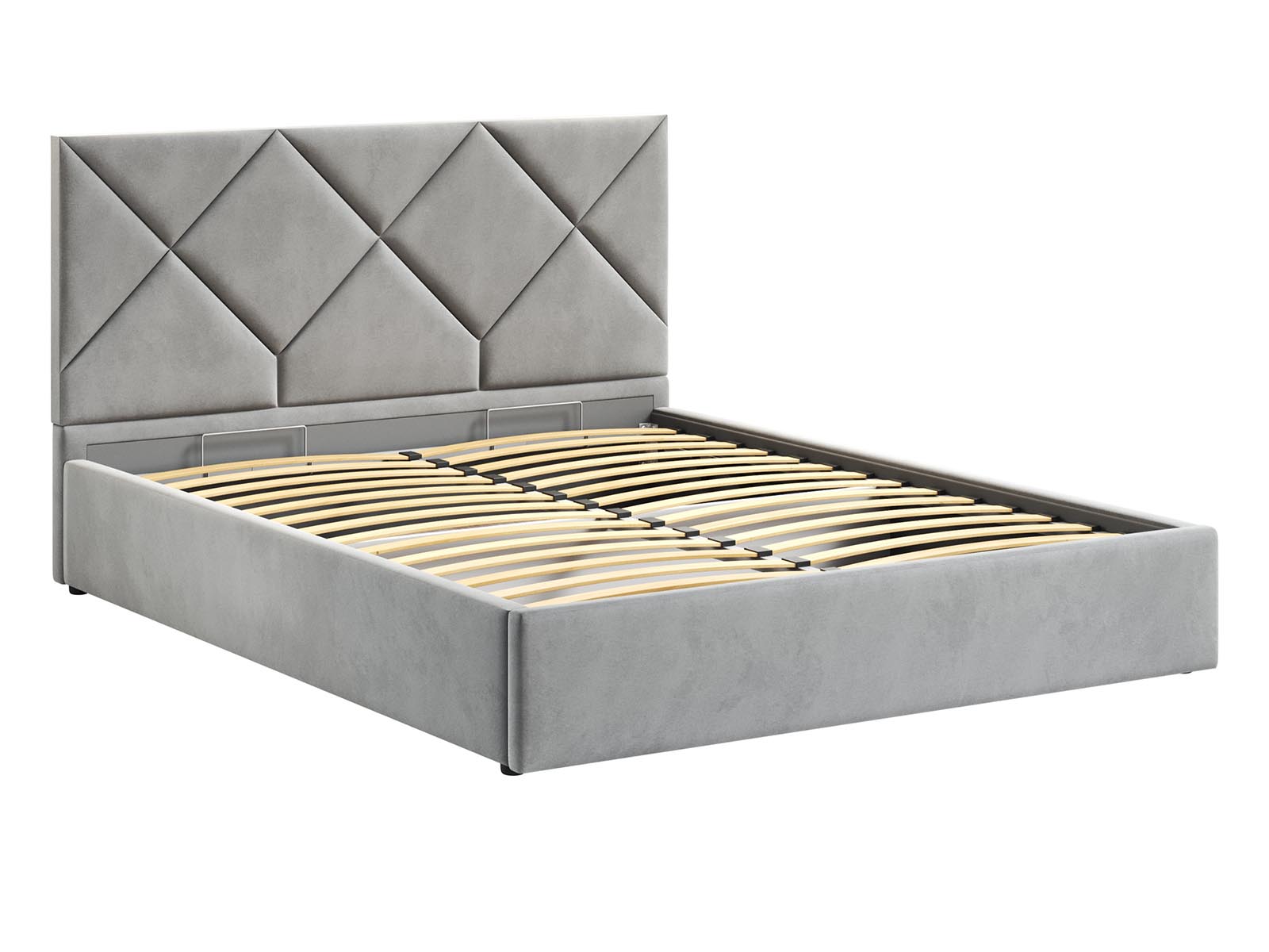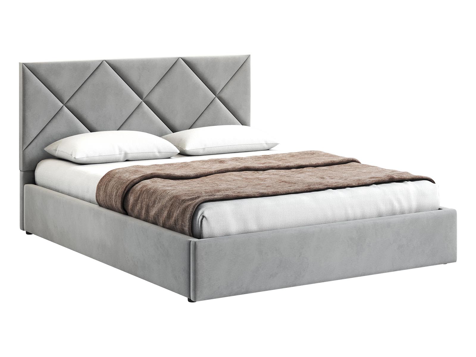 Кровать Венера-6 двуспальная с подъемным механизмом, с мягким изголовьем, ортопедическое основание, ящик для белья, велюр bingo ash