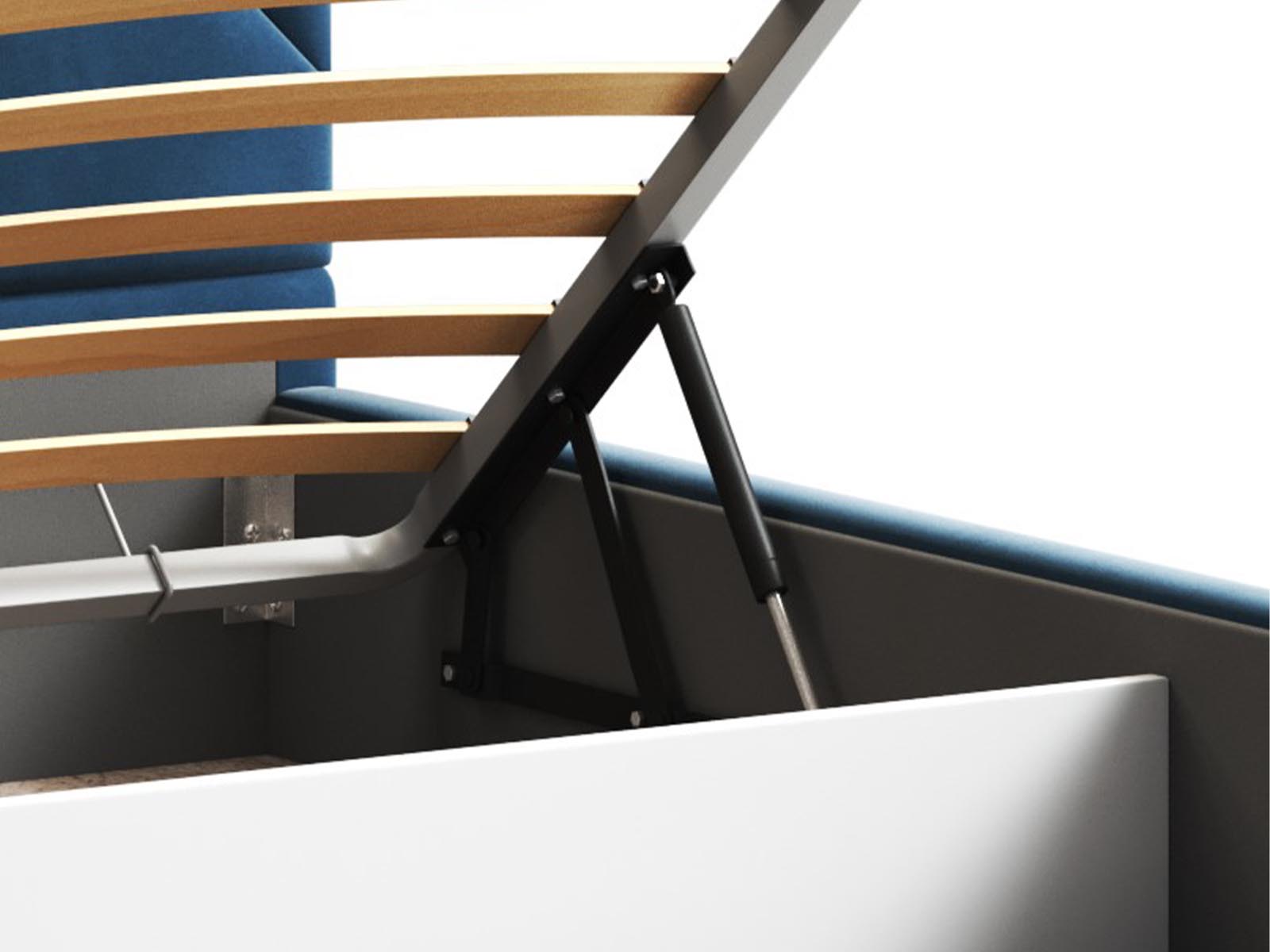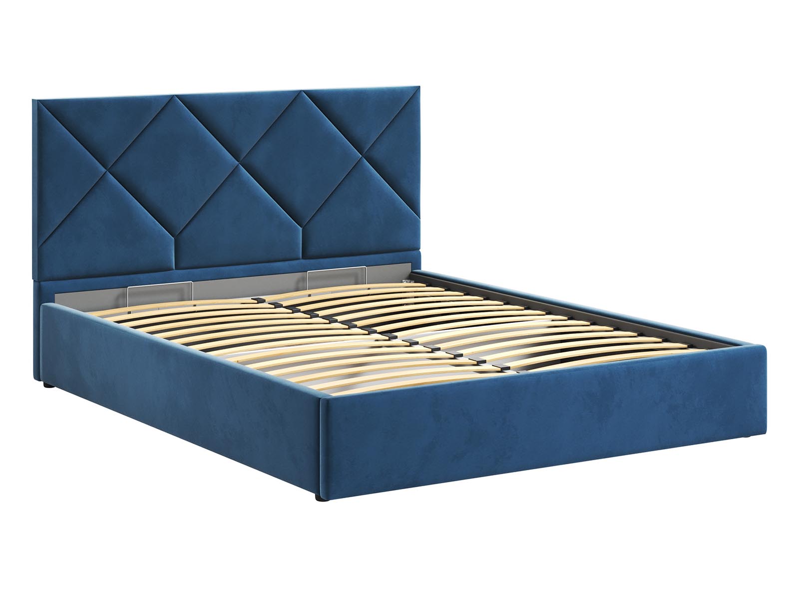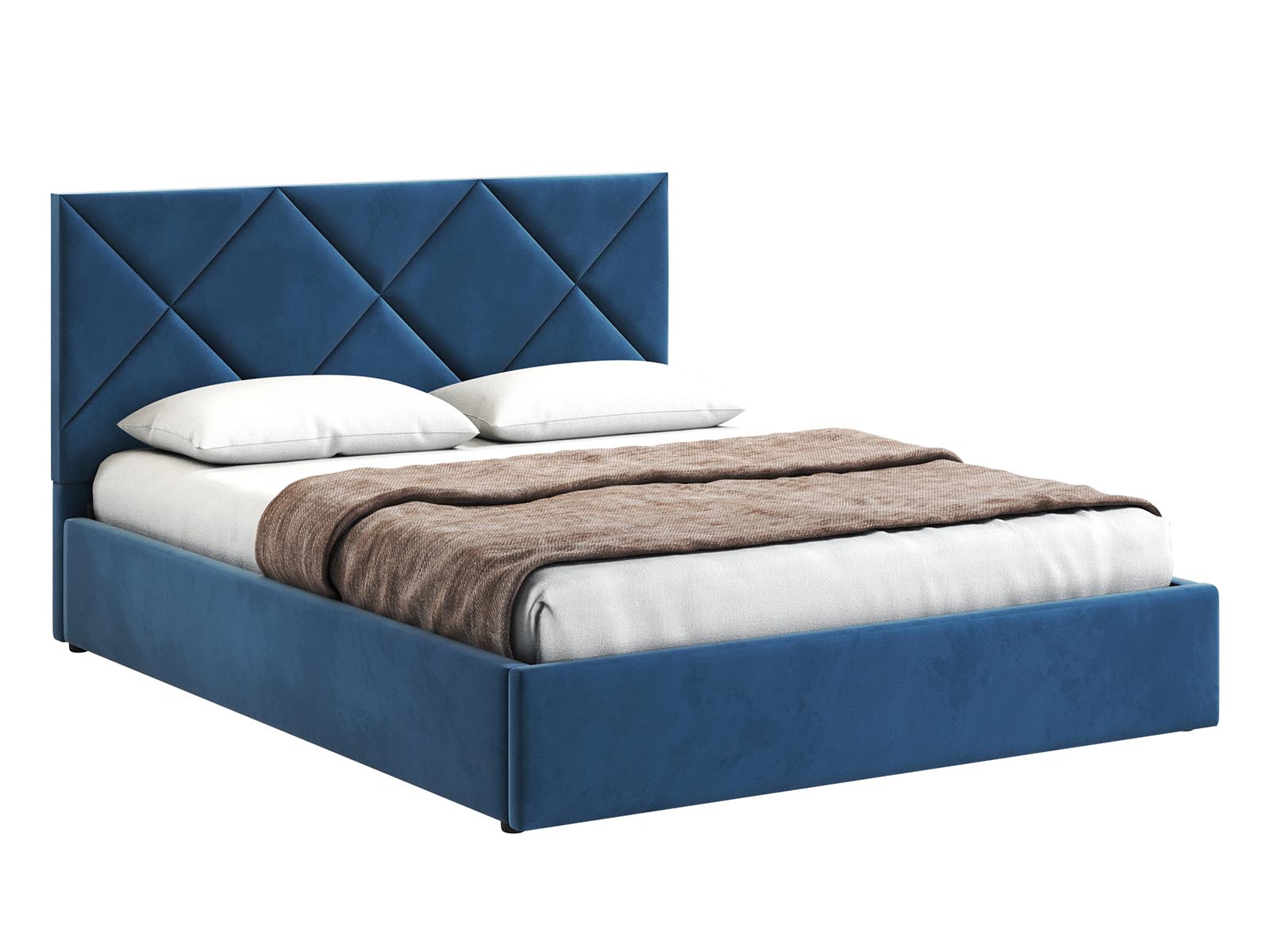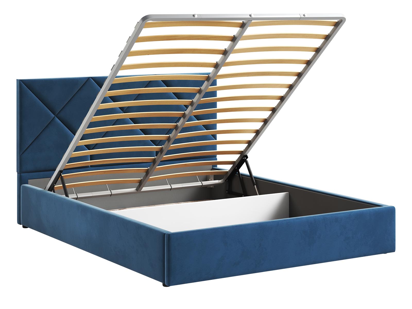 Кровать Венера-6 двуспальная с подъемным механизмом, с мягким изголовьем, ортопедическое основание, ящик для белья, велюр bingo denim