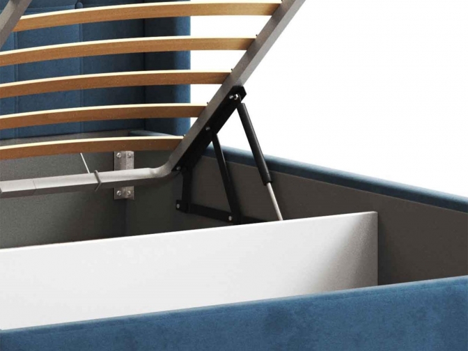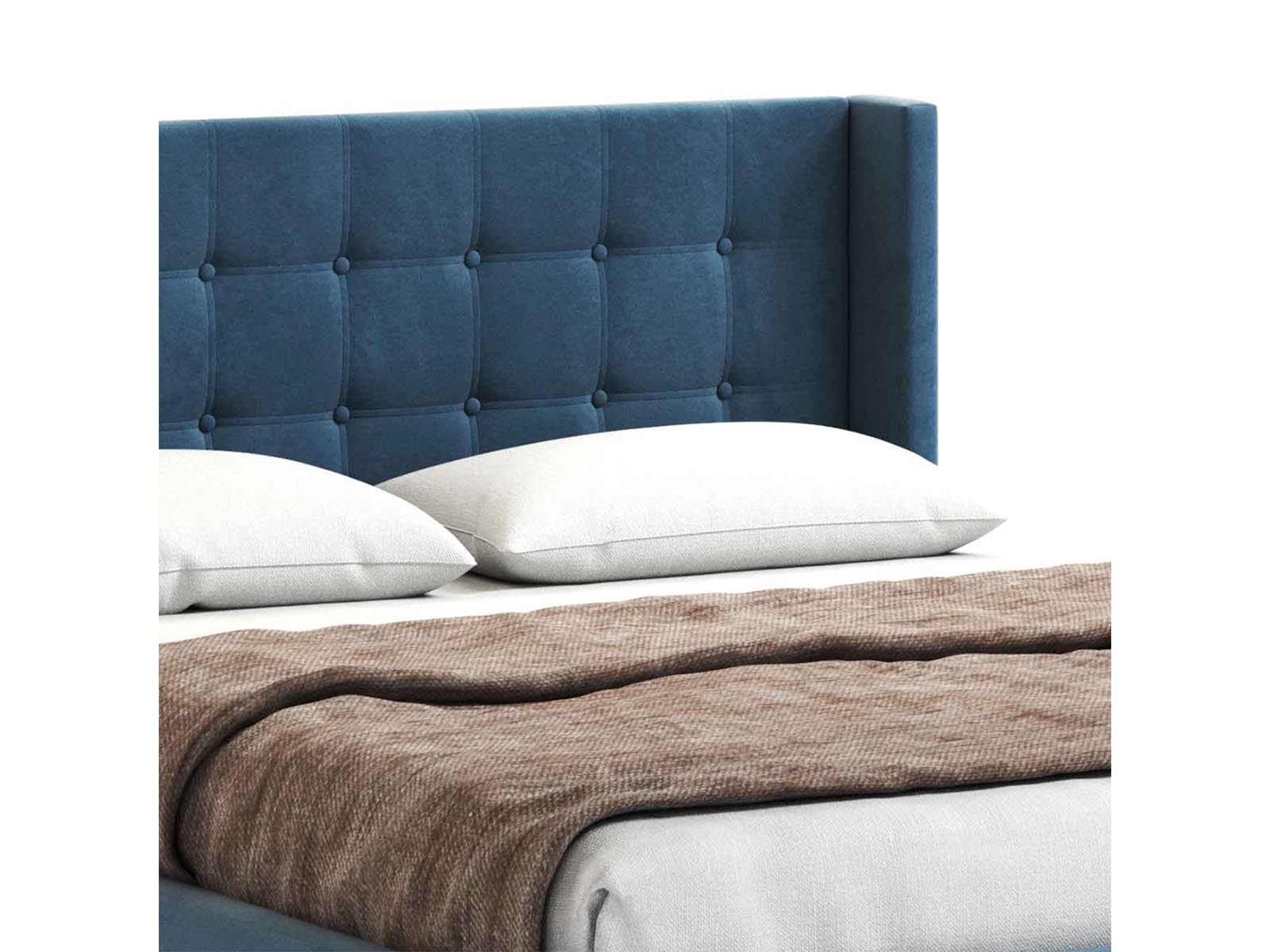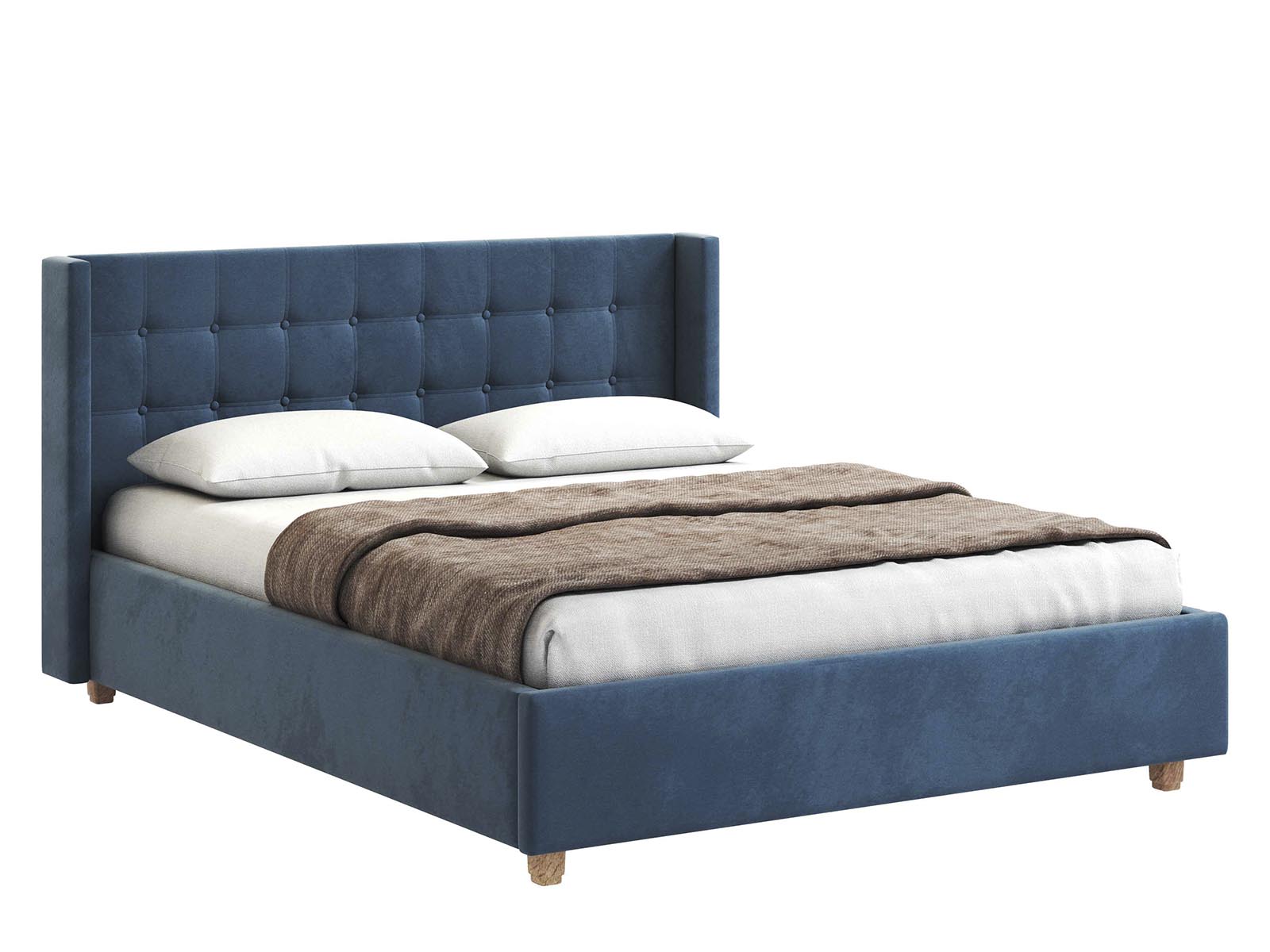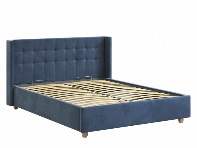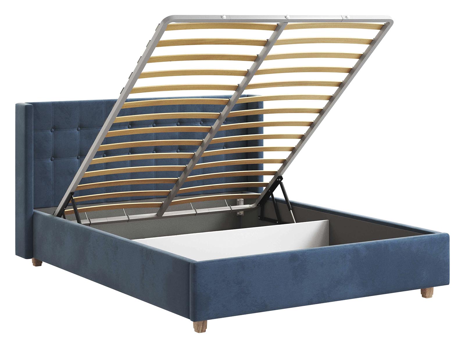 Кровать Венера-9 (2) двуспальная с подъемным механизмом, с мягким изголовьем, ортопедическое основание, ящик для белья, велюр bingo denim