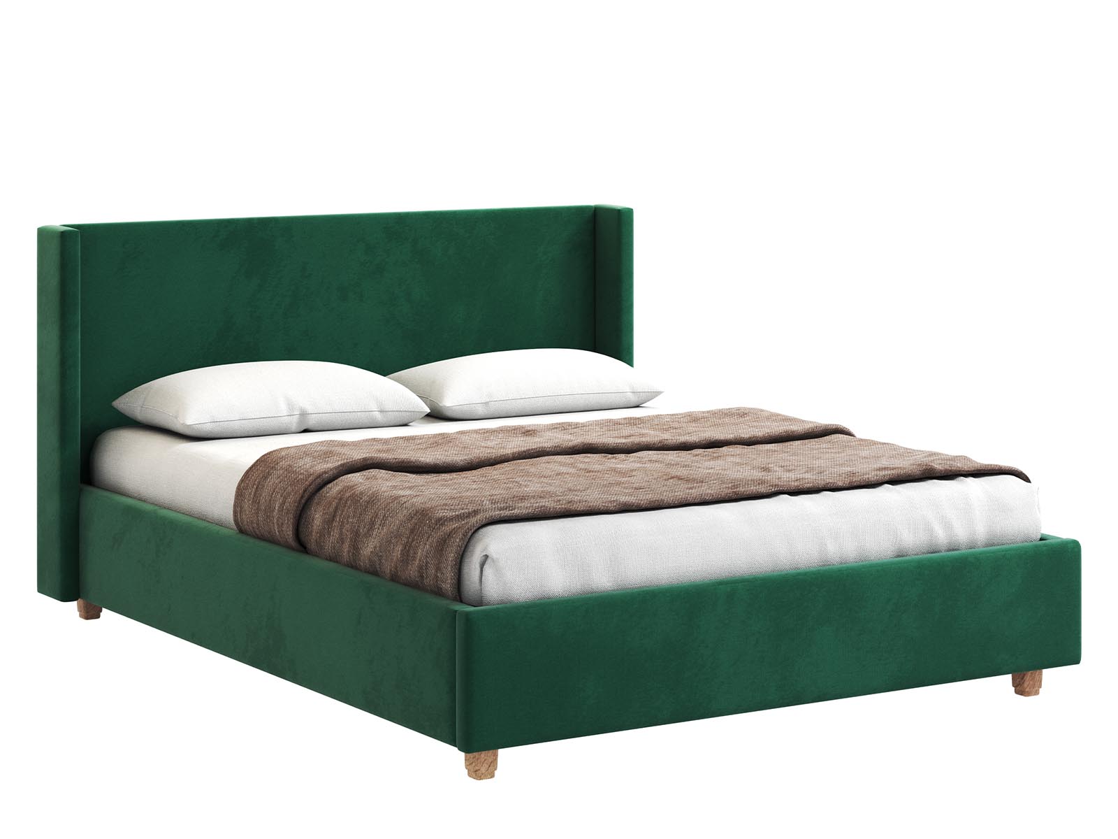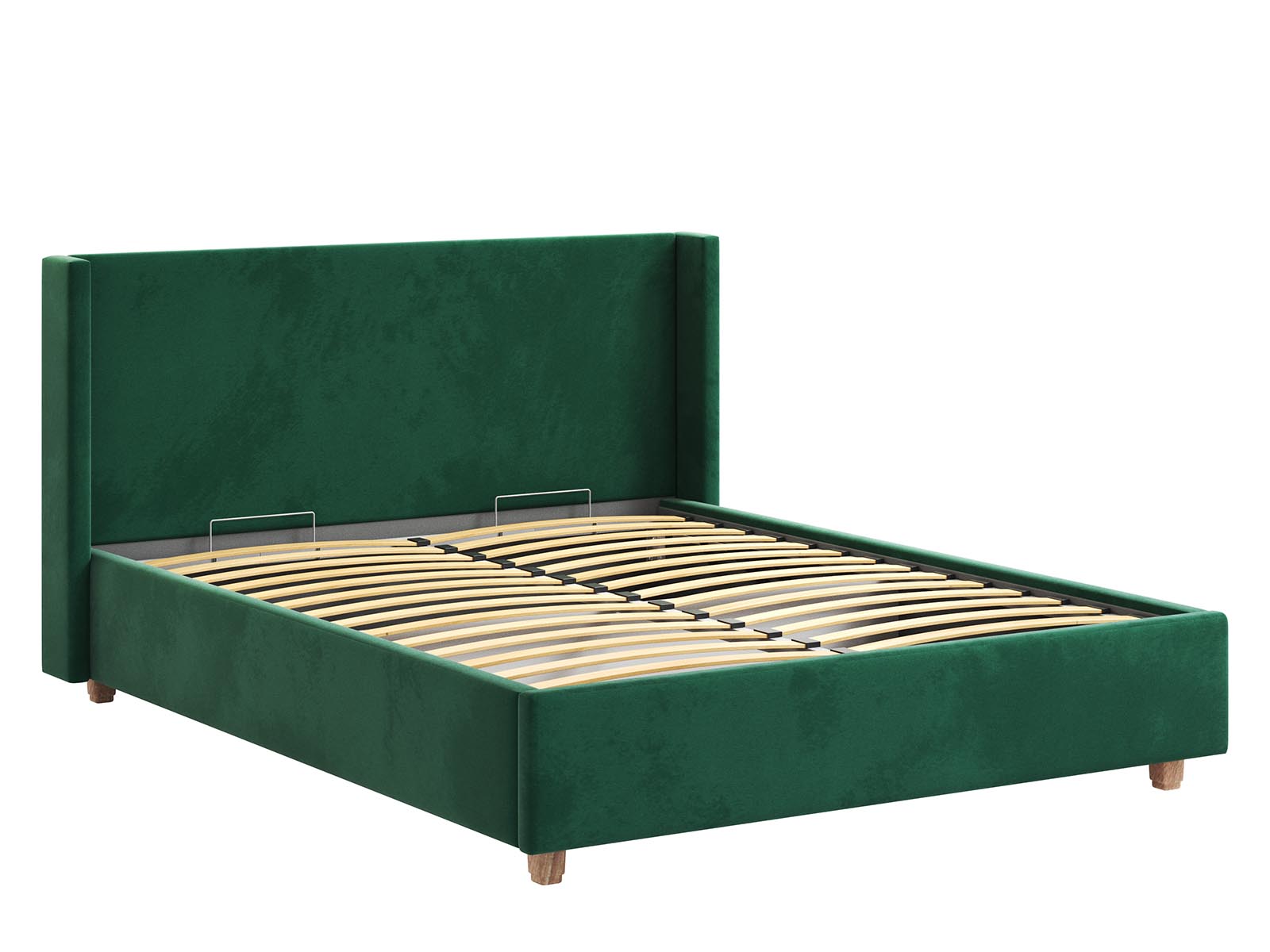 Кровать Венера-9 (1) двуспальная с подъемным механизмом, с мягким изголовьем, ортопедическое основание, ящик для белья, велюр bingo green