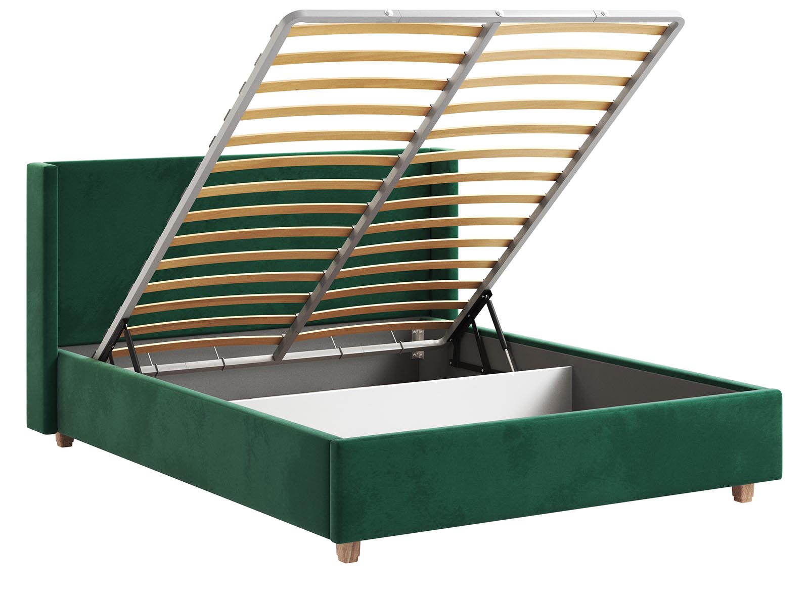 Кровать Венера-9 (2) двуспальная с подъемным механизмом, с мягким изголовьем, ортопедическое основание, ящик для белья, велюр bingo green