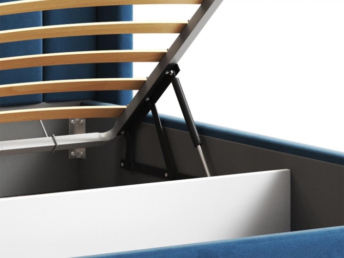 Кровать Венера-9 (3) двуспальная с подъемным механизмом, с мягким изголовьем, ортопедическое основание, ящик для белья, велюр bingo denim