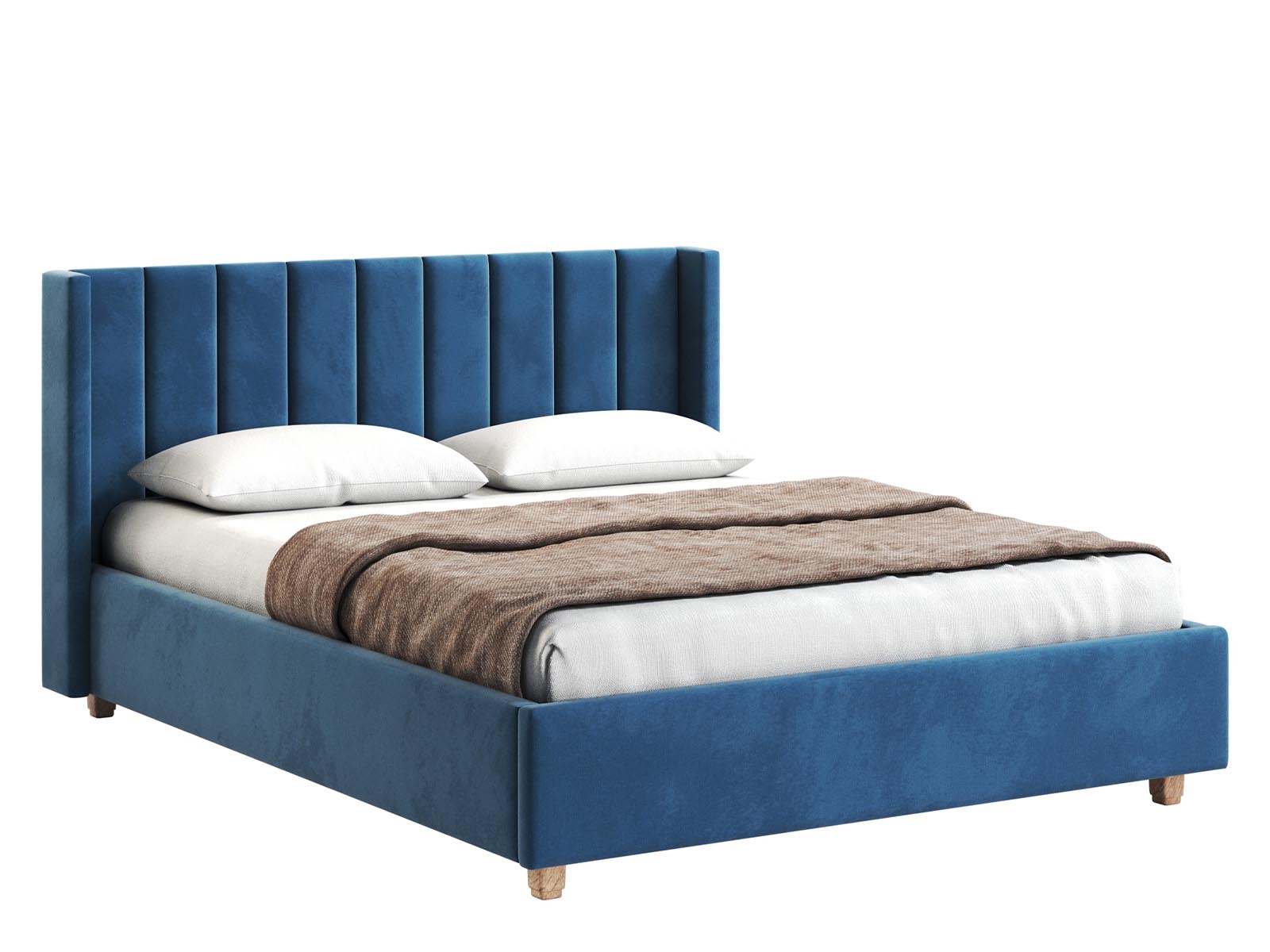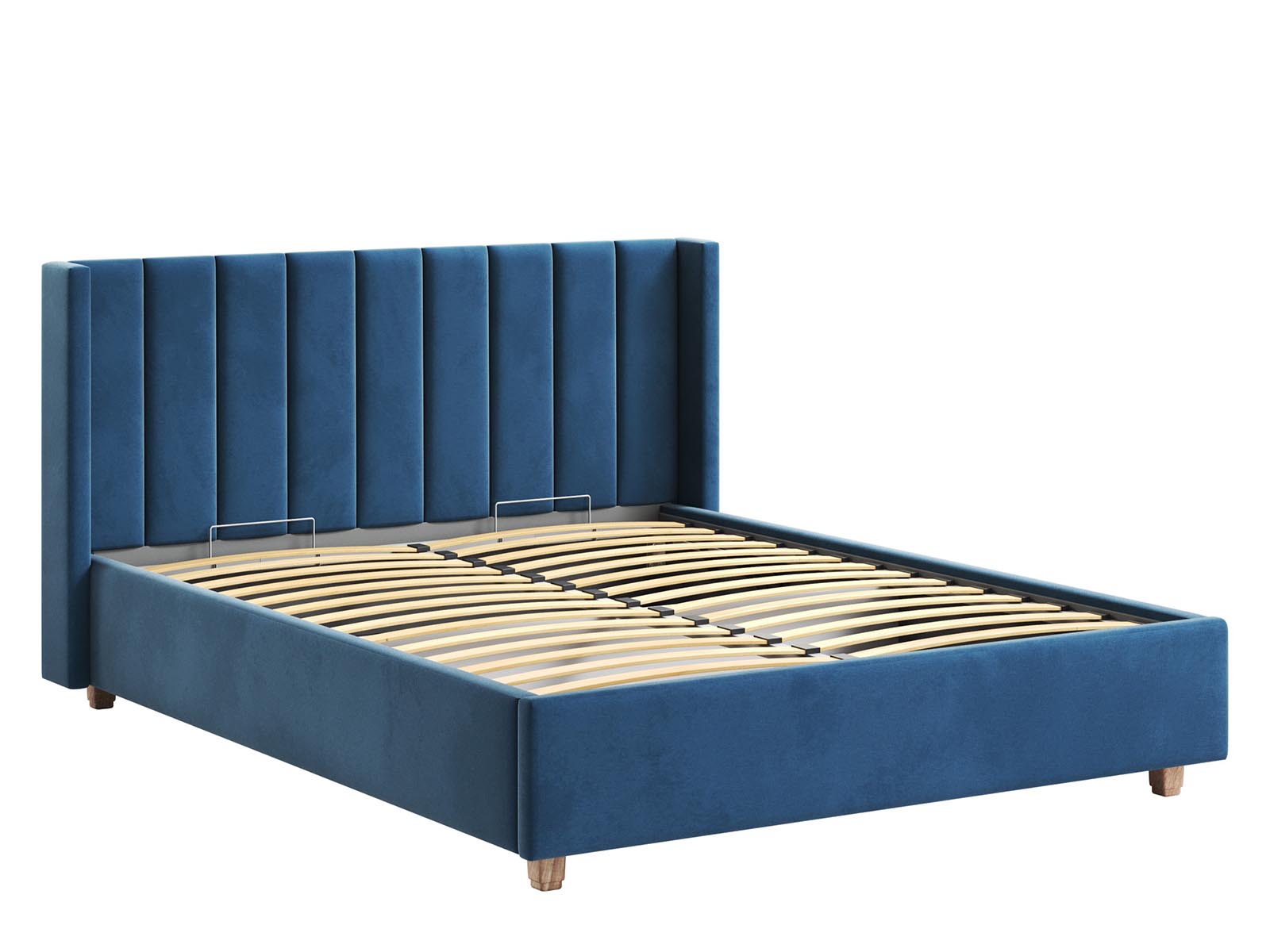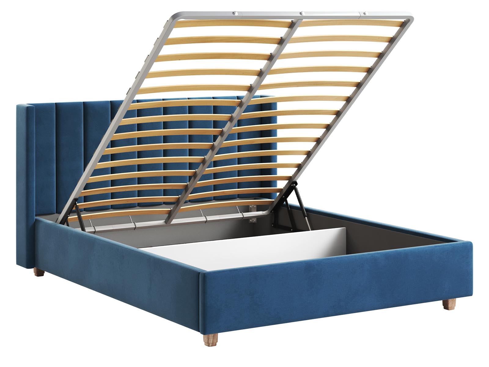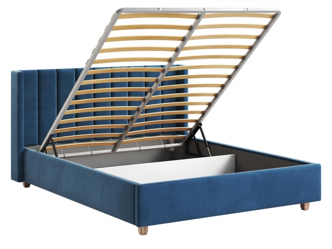 Кровать Венера-9 (2) двуспальная с подъемным механизмом, с мягким изголовьем, ортопедическое основание, ящик для белья, велюр bingo denim