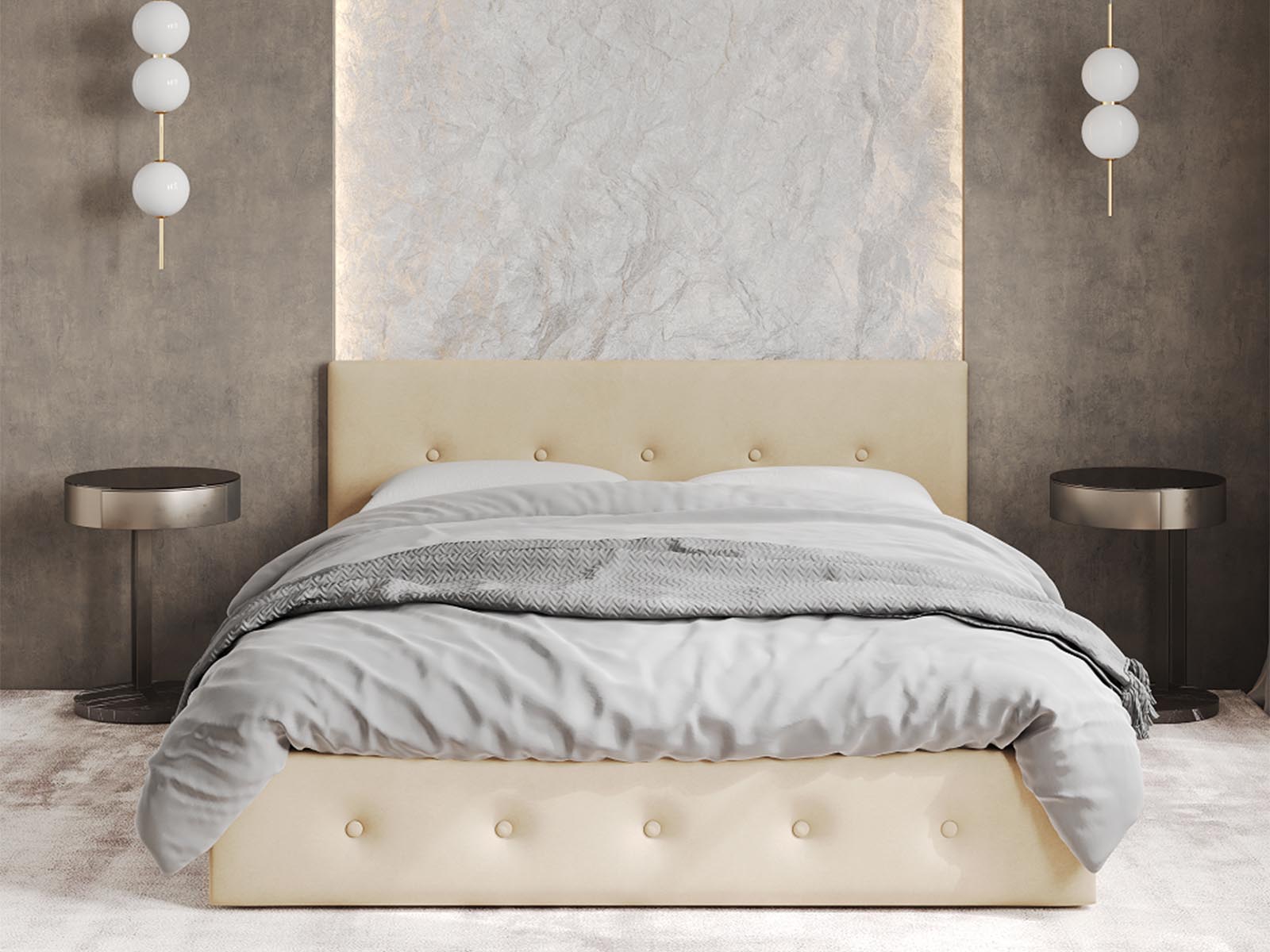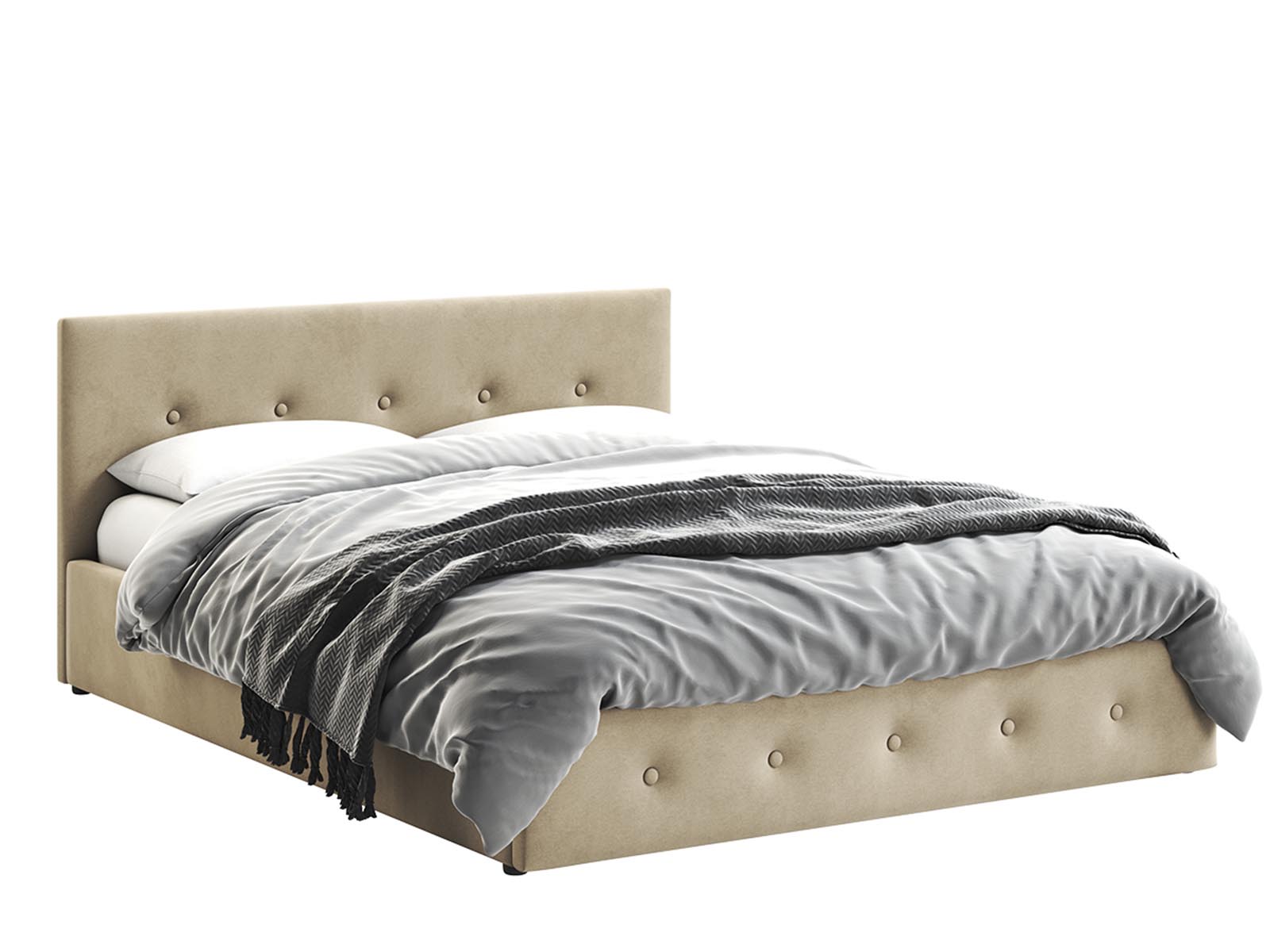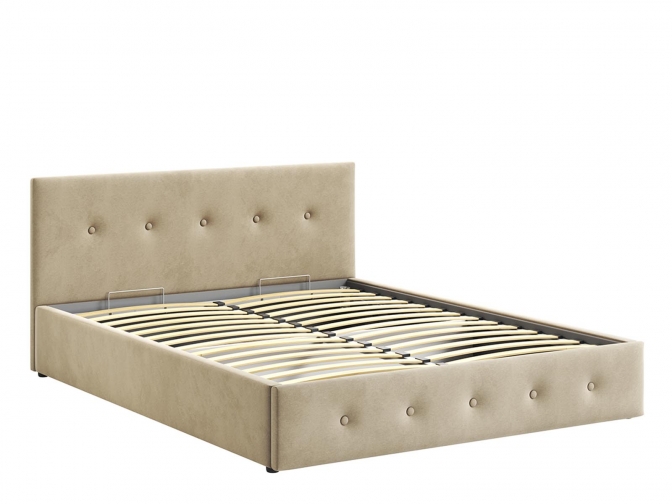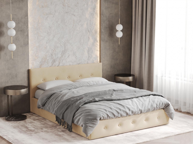 Кровать Венера-10 двуспальная с подъемным механизмом, с мягким изголовьем, ортопедическое основание, ящик для белья, велюр bingo beige