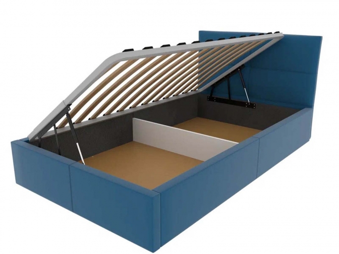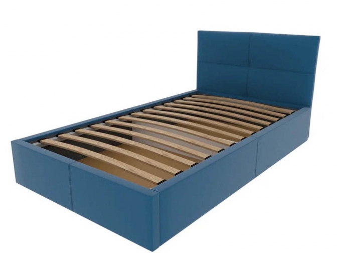 Односпальная кровать Меркурий-5 с подъемным механизмом, с мягким высоким изголовьем, ортопедическое основание, ящик для белья, велюр bingo denim