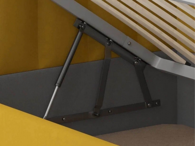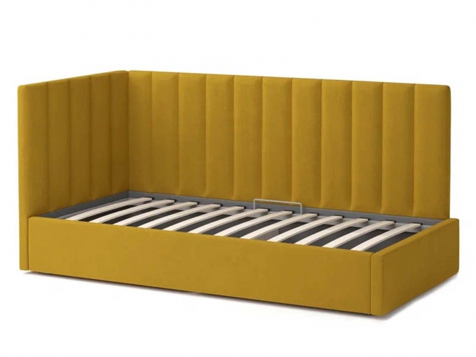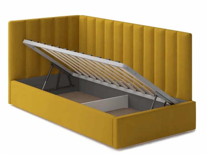 Односпальная кровать Меркурий-3 с подъемным механизмом, с мягким высоким изголовьем, ортопедическое основание, ящик для белья, велюр bingo mustard