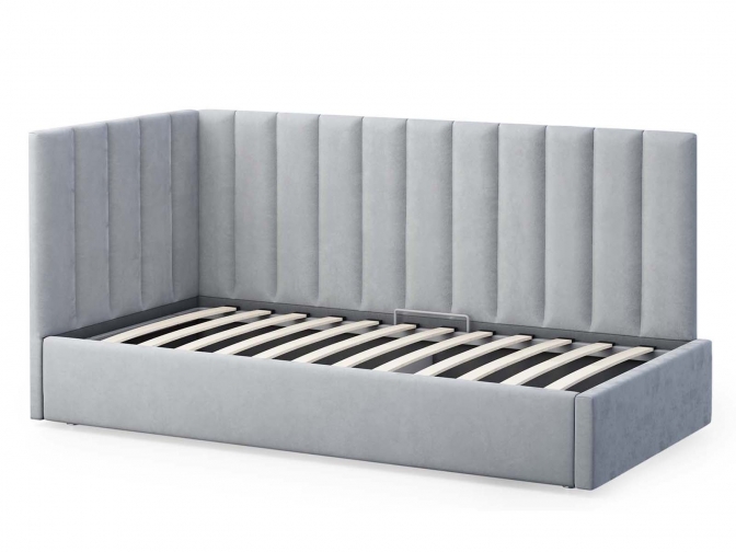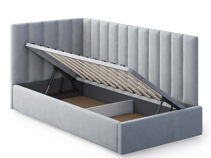 Односпальная кровать Меркурий-3 с подъемным механизмом, с мягким высоким изголовьем, ортопедическое основание, ящик для белья, велюр bingo ash