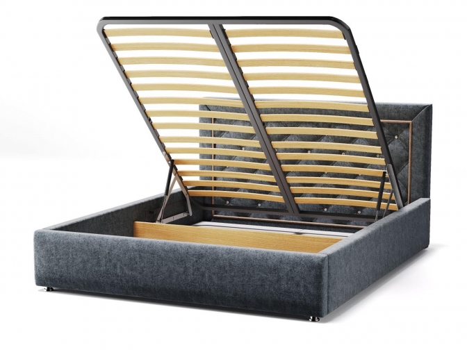 Кровать Адель, с ортопедическим основанием и подъёмным механизмом (Велюр Zara Grafit)