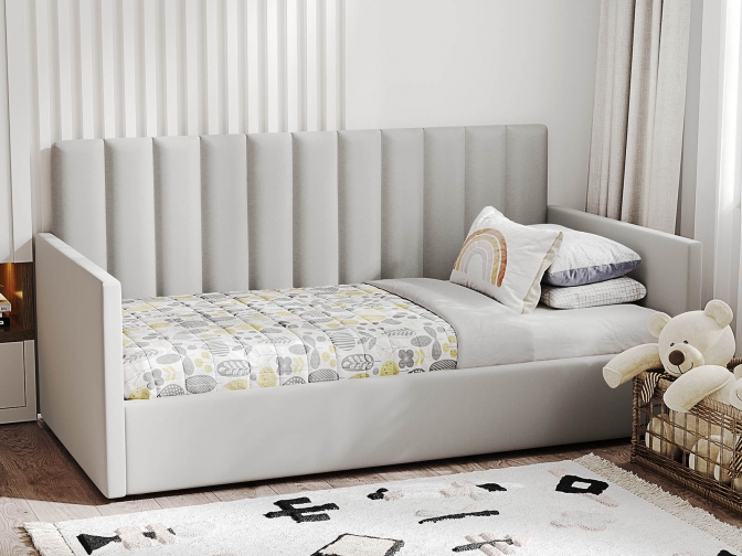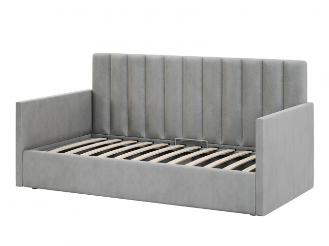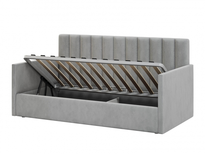 Односпальная кровать Меркурий-4 с подъемным механизмом, 3-я спинками, ортопедическое основание, ящик для белья, велюр bingo ash