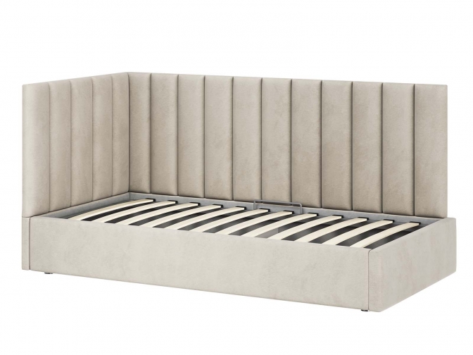 Односпальная кровать Меркурий-3 с подъемным механизмом, с мягким высоким изголовьем, ортопедическое основание, ящик для белья, велюр bingo beige