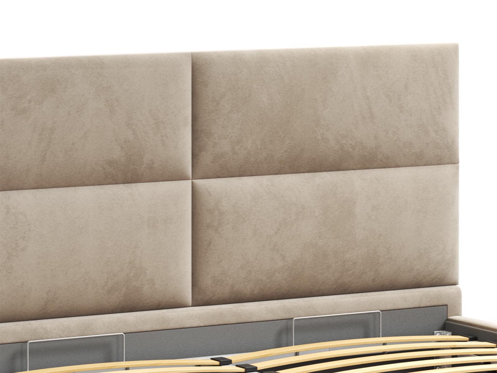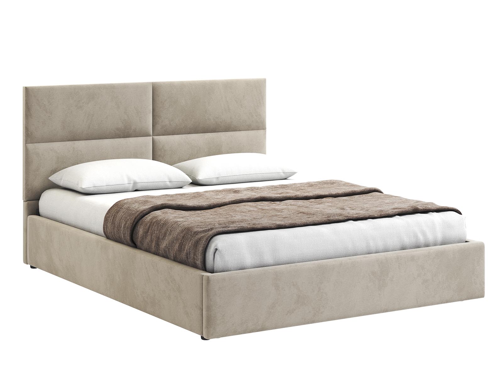 Кровать Венера-4 двуспальная с подъемным механизмом, с мягким изголовьем, ортопедическое основание, ящик для белья, велюр bingo biege