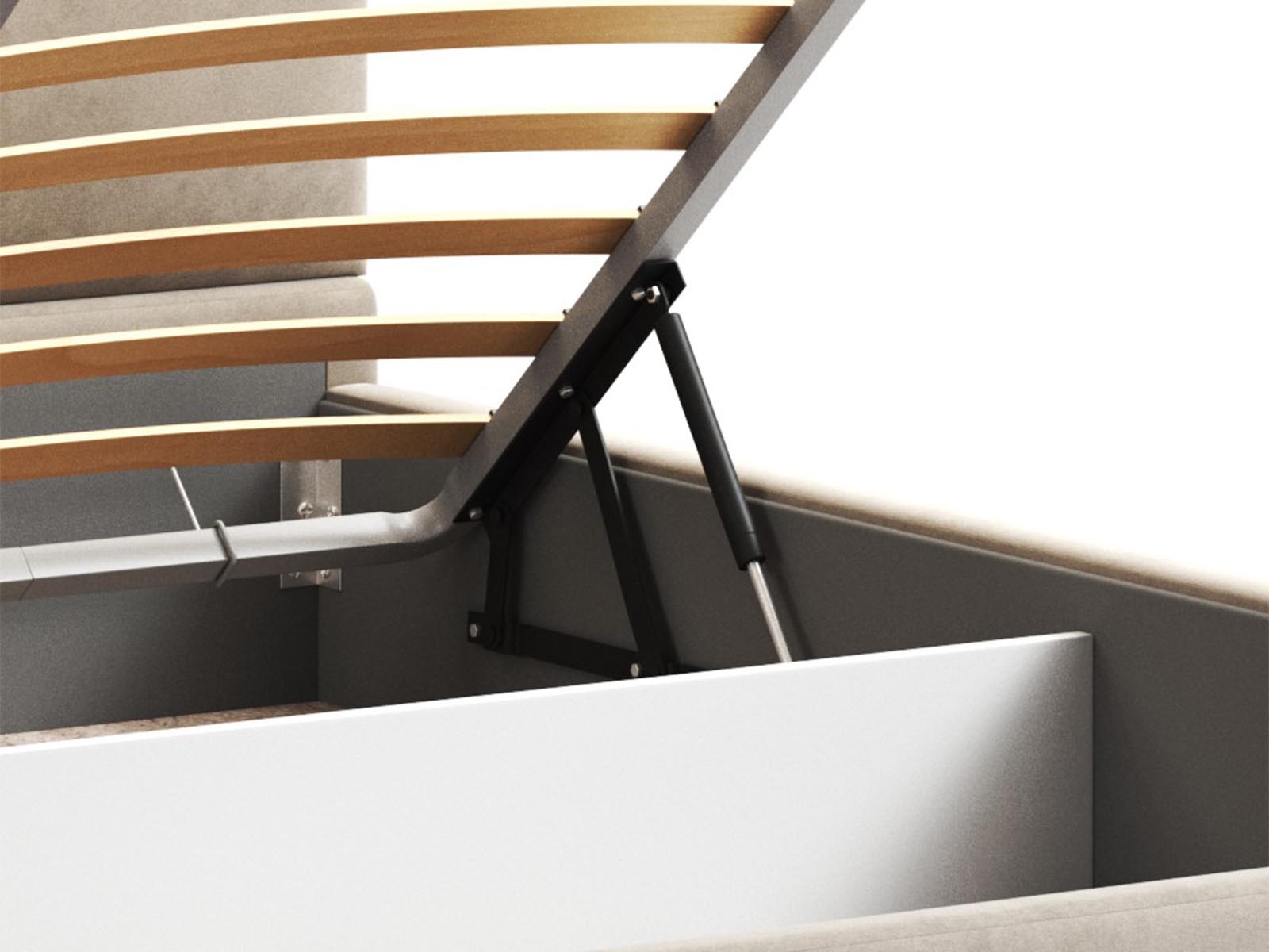 Кровать Венера-4 Гелекси двуспальная с подъемным механизмом, с мягким изголовьем, ортопедическое основание, ящик для белья, велюр bingo biege