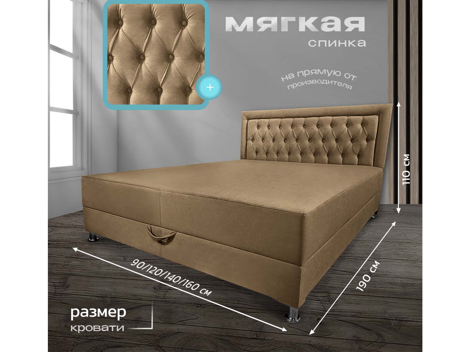 Можно заказать со спальным местом 90, 120, 140 или 160 см.