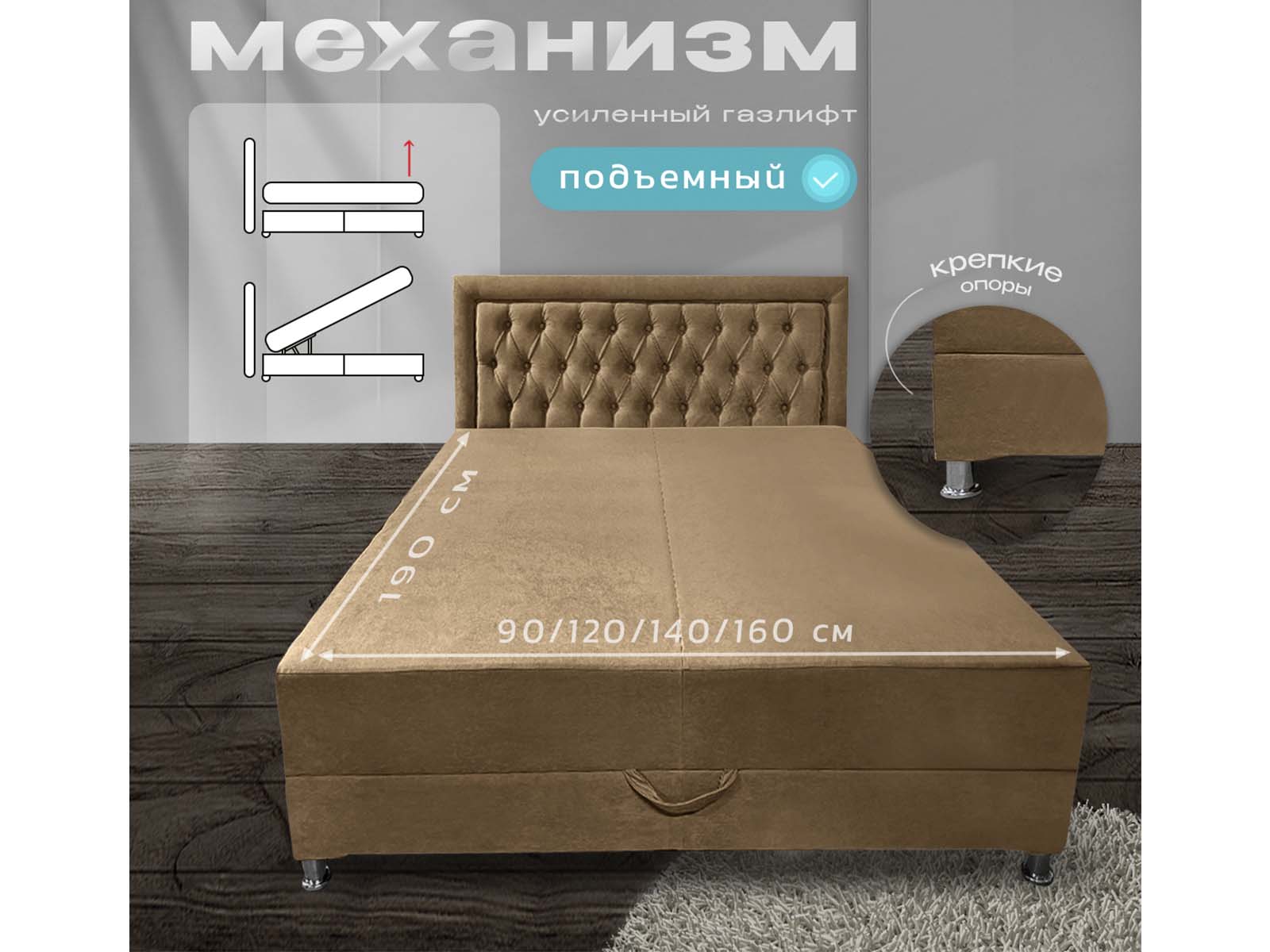 Механизм трансформации: тахта поднимается и удерживается