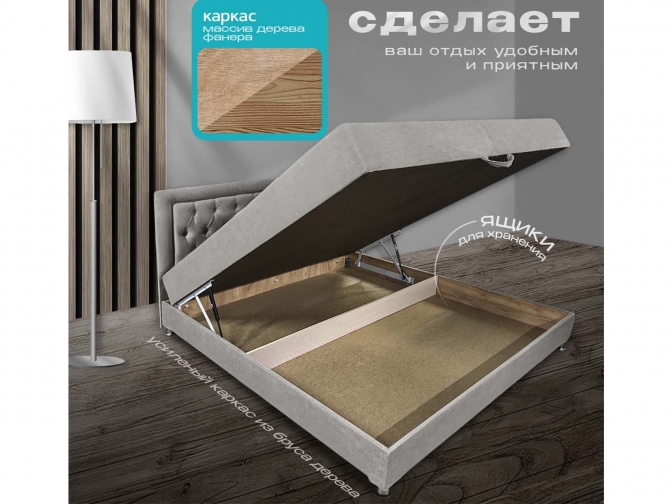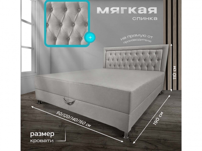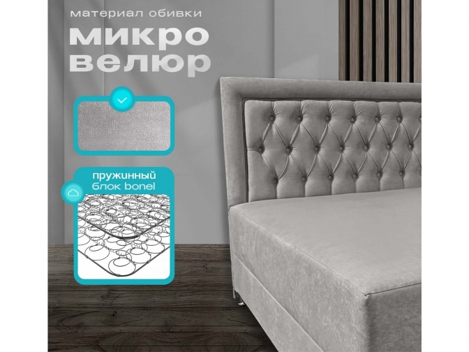 Кровать-Тахта Олсен 5 с подъемным механизмом, пружинный блок Bonnel, обивка велюр светло-серый