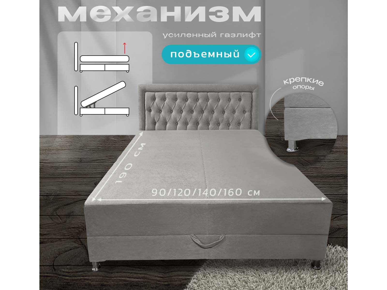Механизм трансформации: тахта поднимается и удерживается