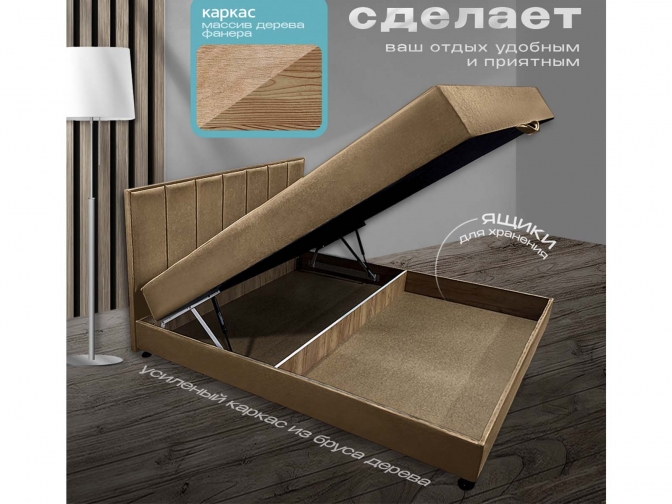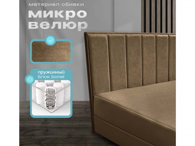 Кровать-Тахта Олсен 2 с подъемным механизмом, пружинный блок Bonnel, обивка велюр коричневый
