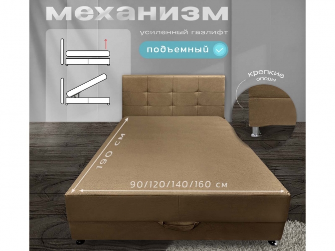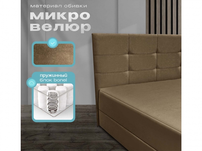 Кровать-Тахта Олсен 3 с подъемным механизмом, пружинный блок Bonnel, обивка велюр коричневый