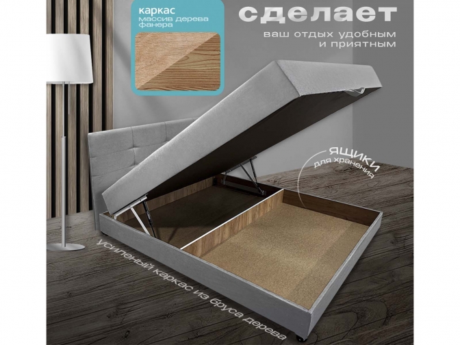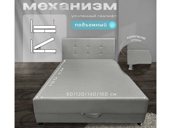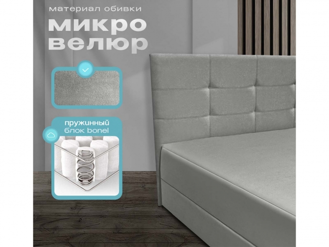 Кровать-Тахта Олсен 3 с подъемным механизмом, пружинный блок Bonnel, обивка велюр светло-серый