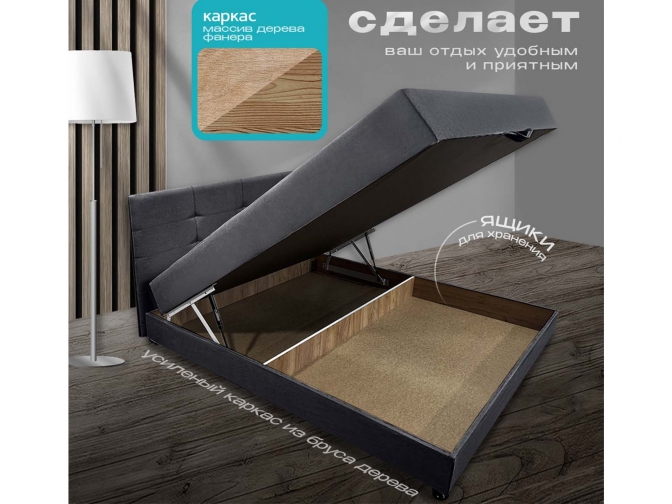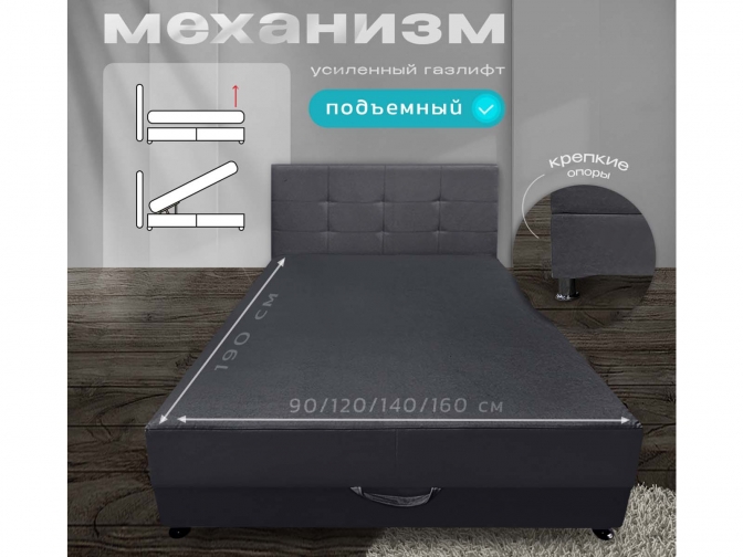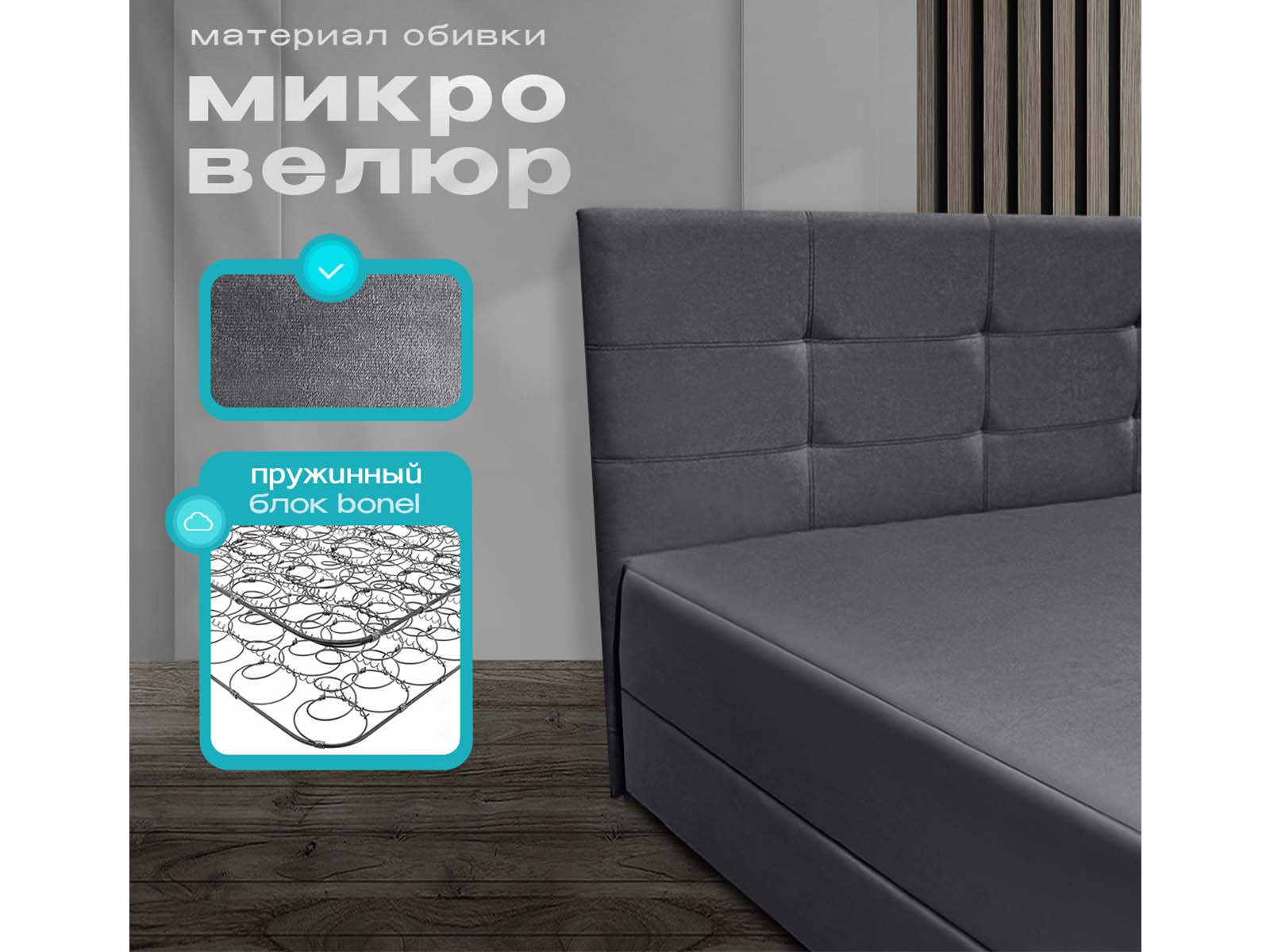 Кровать-Тахта Олсен 3 с подъемным механизмом, пружинный блок Bonnel, обивка велюр темно-серый