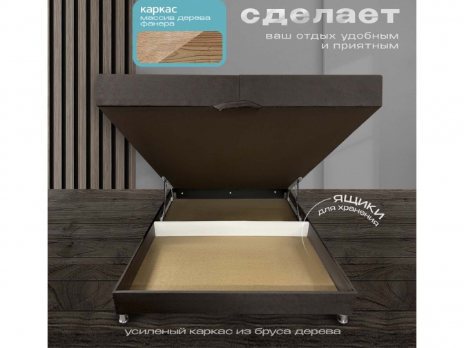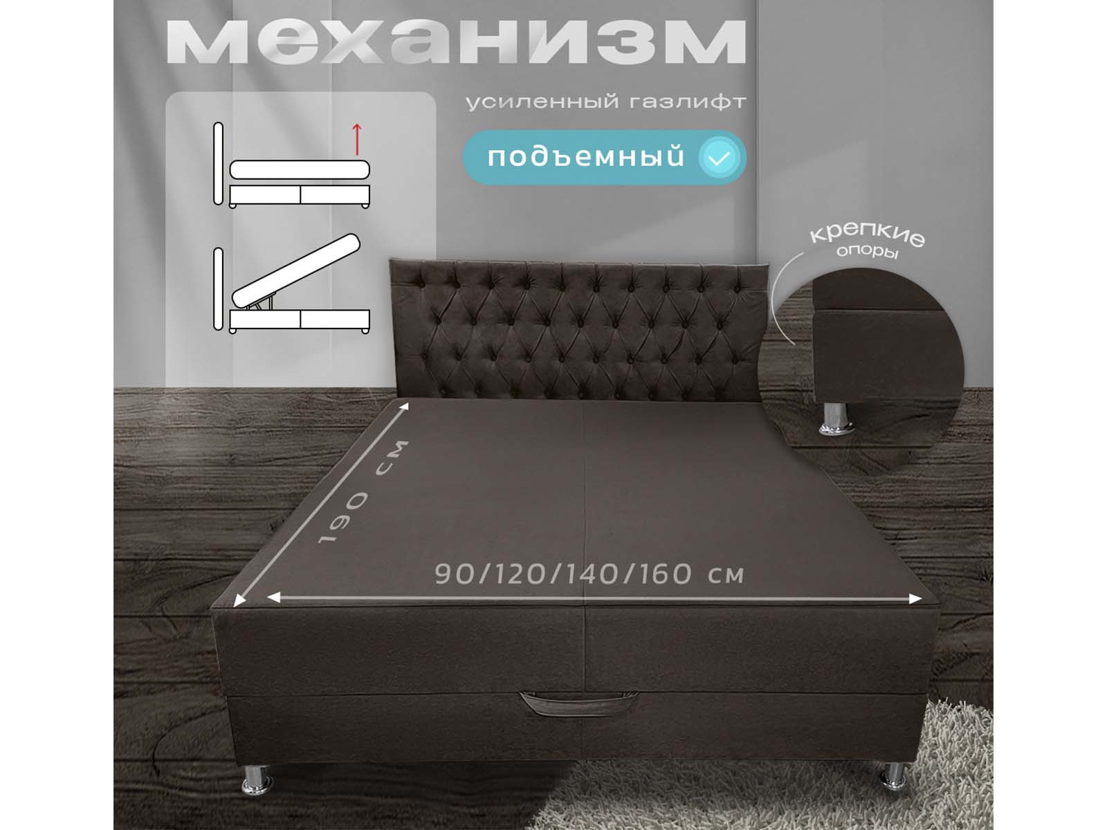 Кровать-Тахта Олсен 4 с подъемным механизмом, пружинный блок Bonnel, обивка велюр темно-коричневый