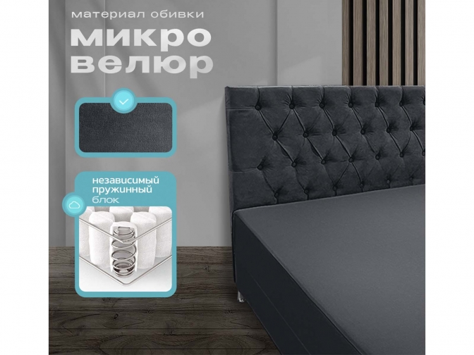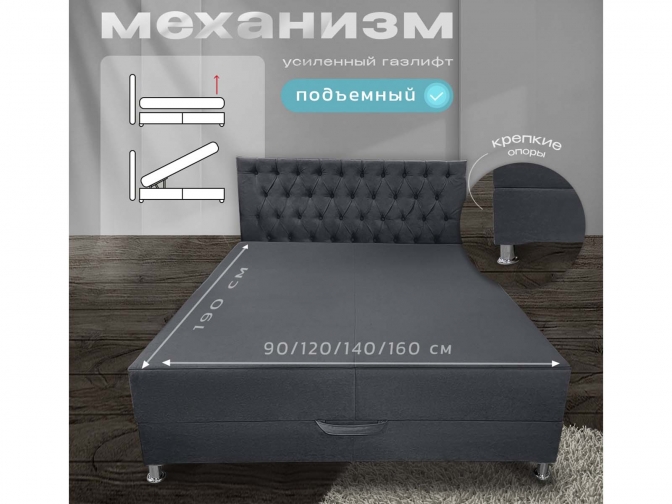 Кровать-Тахта Олсен 4 с подъемным механизмом, пружинный блок Bonnel, обивка велюр темно-серый