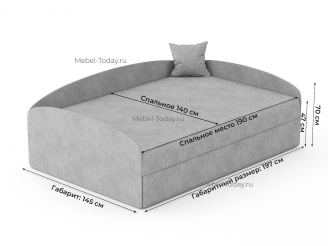 Диван-тахта Овальная три спинки 140x190 см, двуспальная большая, ящик для белья, подъемный механизм