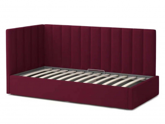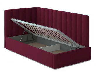 Односпальная кровать Меркурий-3 с подъемным механизмом, с мягким высоким изголовьем, ортопедическое основание, ящик для белья, велюр bingo wine