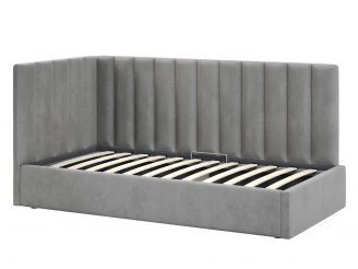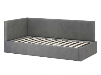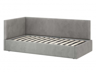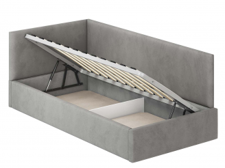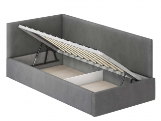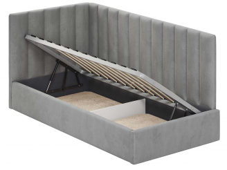 Односпальная кровать Меркурий-2 с подъемным механизмом, с мягким высоким изголовьем, ортопедическое основание, ящик для белья, велюр bingo grey