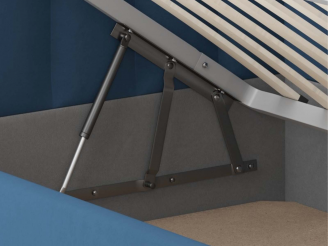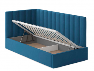 Односпальная кровать Меркурий-3 с подъемным механизмом, с мягким высоким изголовьем, ортопедическое основание, ящик для белья, велюр bingo denim