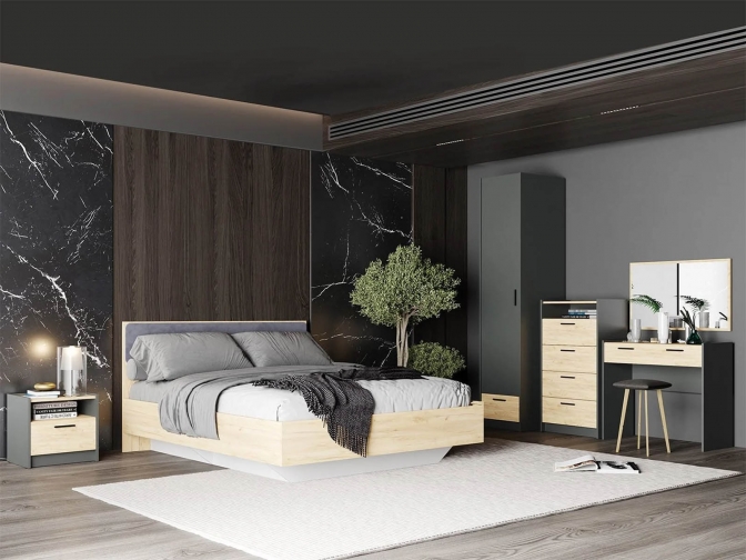 Цена указана за элементы на фото: Комод Оттавия НМ 011.03 + Тумба прикроватная Оттавия НМ 011.15 + Шкаф для одежды Оттавия НМ 011.20 + Стол туалетный Оттавия НМ 011.40 + Кровать Оттавия НМ 011.56 + Зеркало Оттавия НМ 040.01-01
