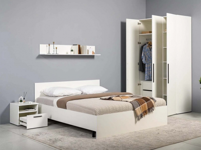 Цена указана за все элементы на фото: Полка Эйр 16.490 Белый + Шкаф комбинированный Эйр 13.182 + Тумба прикроватная Эйр 16.12 2 шт. + Кровать Эйр 11.46.02