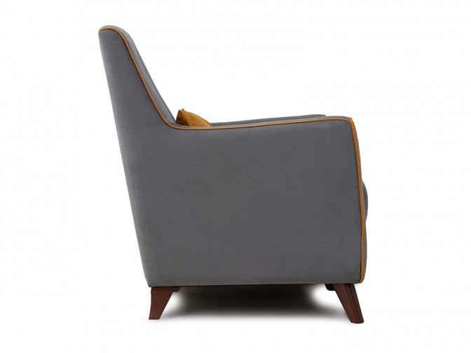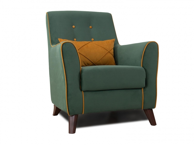 В комплекте идет подушка с наполнителем из полиэфирного волокна «шарики», которая подчеркивает стиль кресла и добавляет комфорта. Опоры из пластика в коричневом цвете придают модели изысканный вид, а их высота 120 мм спереди и 100 мм сзади, обеспечивает устойчивость и лёгкость в уходе.