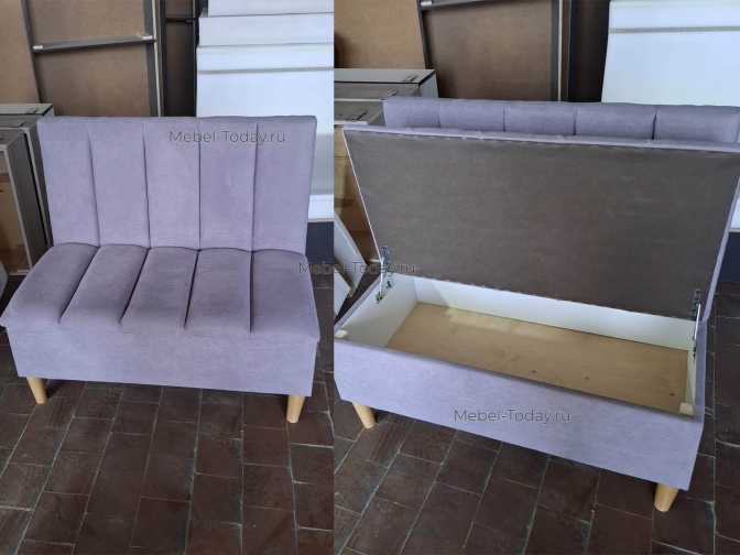 Диван Лаванда 100 см из велюра для офиса и кухни без механизма с ящиком для хранения