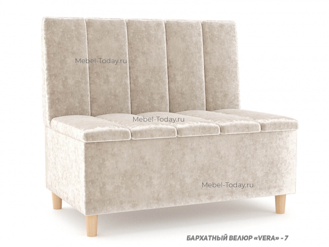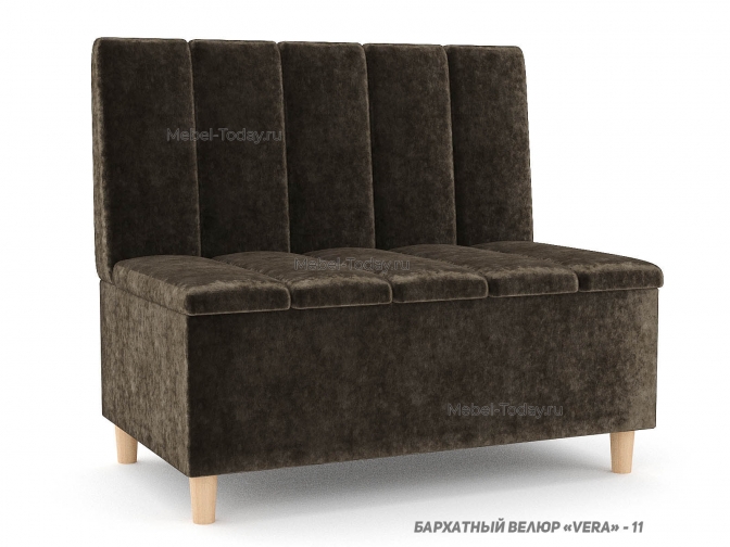 Этот компактный диван отличается стильным современным дизайном с вертикальной стежкой на спинке и сиденье. Обивка из мягкого бархата добавляет изделию элегантности и уюта. Модель установлена на изящные деревянные ножки округлой формы, что придает легкость конструкции и визуально ее приподнимает. Отличный выбор для небольших помещений — офиса, кухни или прихожей.