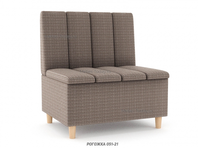 Этот диван выглядит как компактная прямая модель с вертикальной стежкой на спинке и сиденье. Обивка выполнена из мягкой ткани, придающего изделию уютный и стильный вид. Диван установлен на деревянные ножки округлой формы, что добавляет легкости и визуально приподнимает конструкцию.