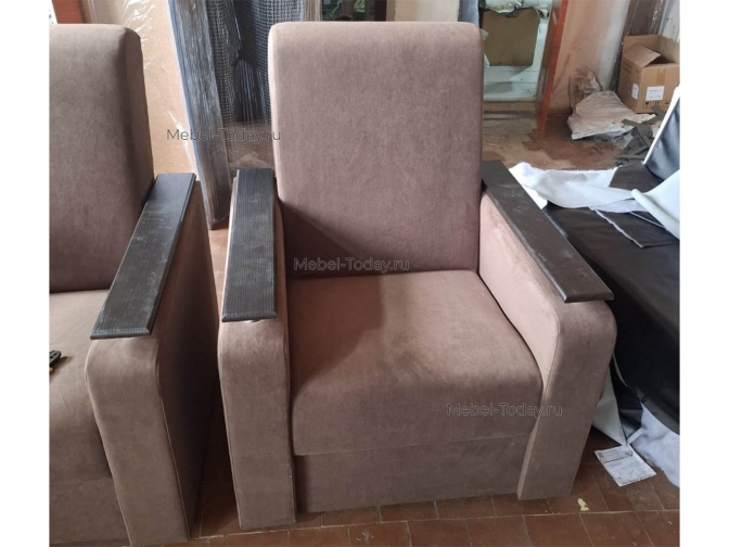 Кресло без механизма Шарк с деревянными подлокотниками МДФ, обивка рогожка, велюр, экокожа