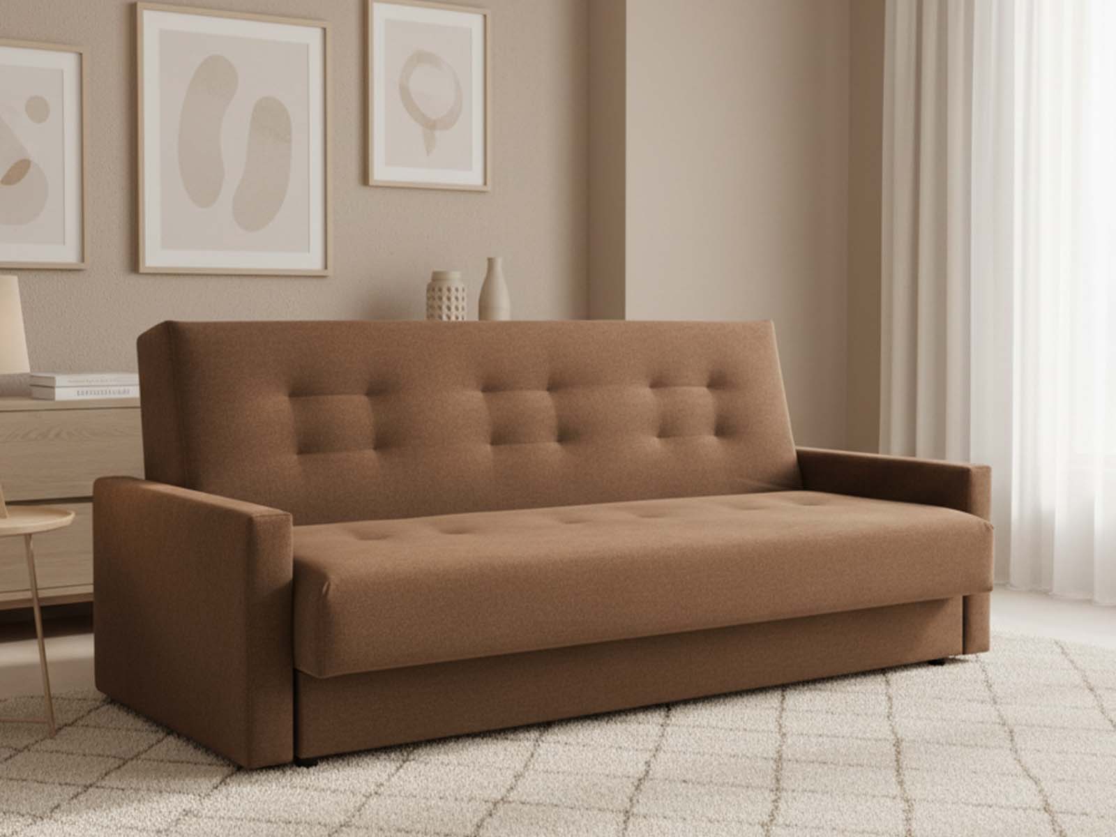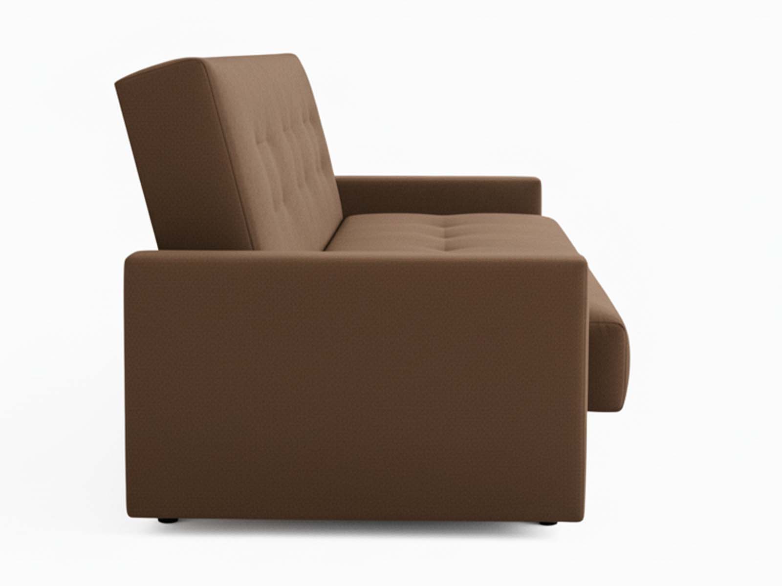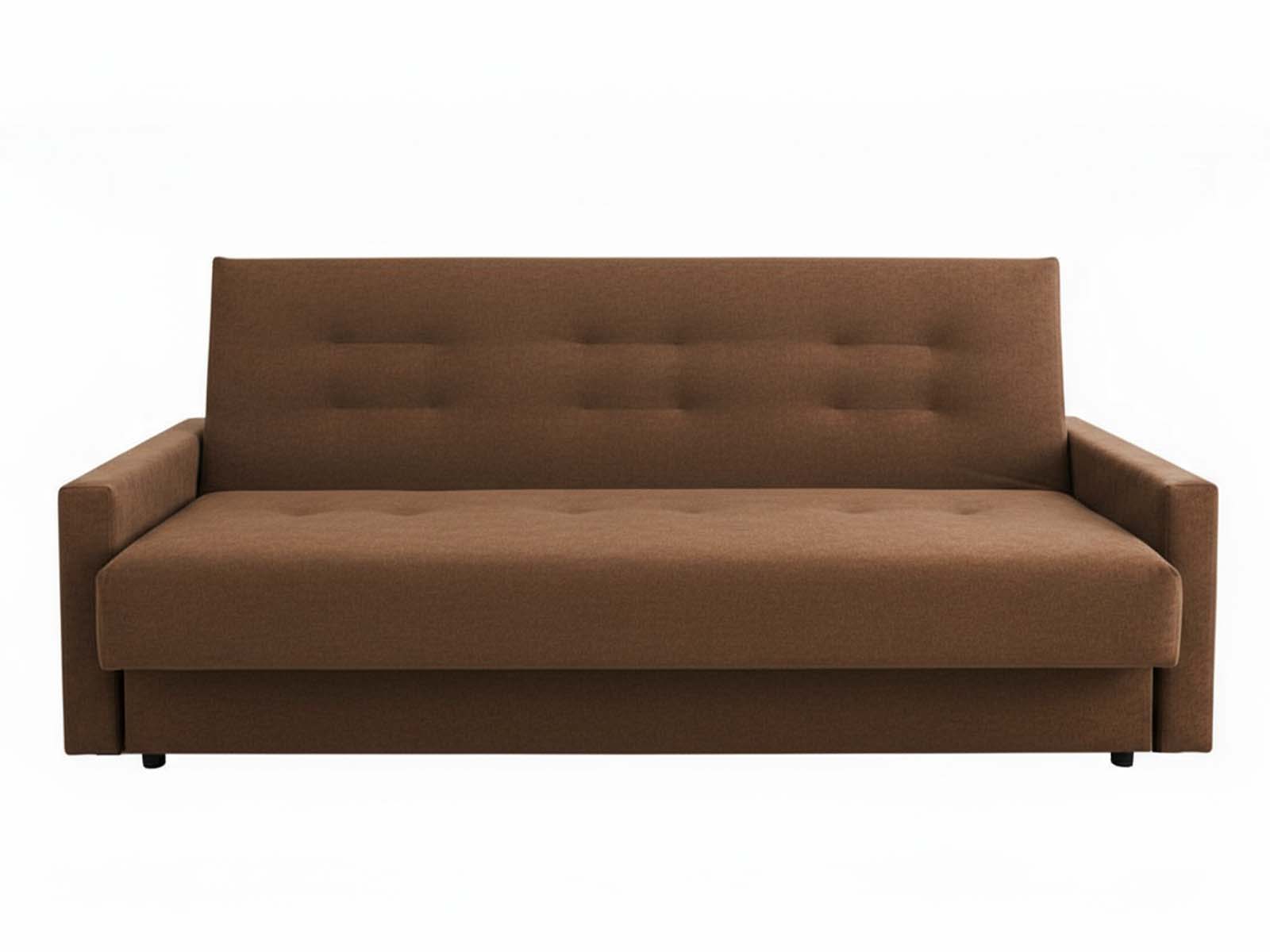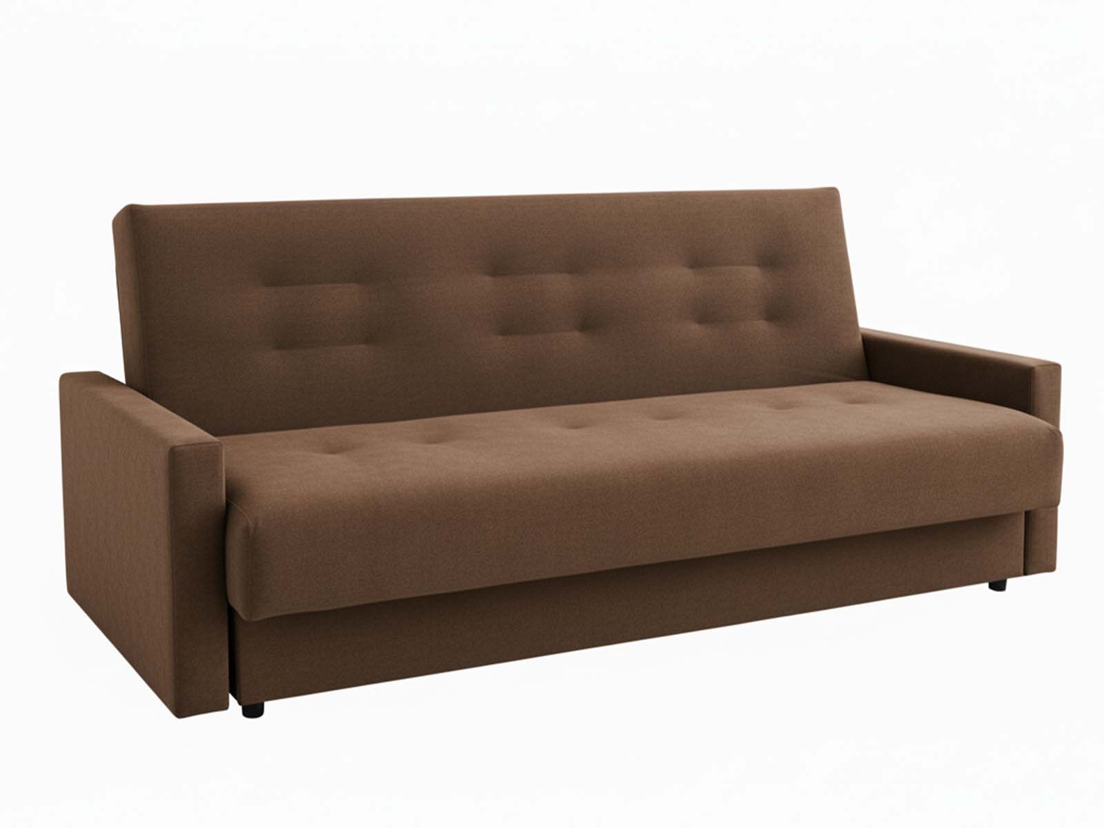 Диван книжка Милан Астра коричневый с большим бельевым ящиком отличается потрясающим комфортом и продуманным дизайном. Очень удобная модель с механизмом трансформации «книжка» быстро раскладывается в просторную кровать, а спокойный, здоровый сон обеспечивает блок из ППУ, уровень жесткости которого выше среднего.