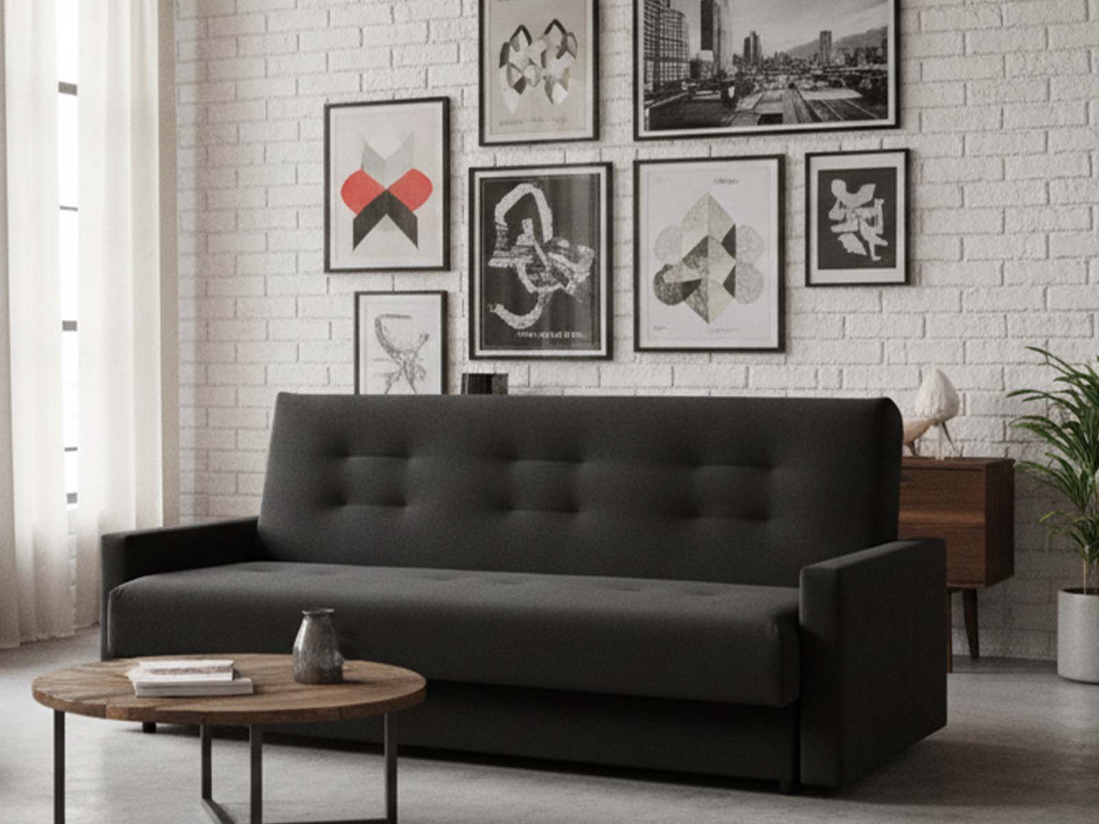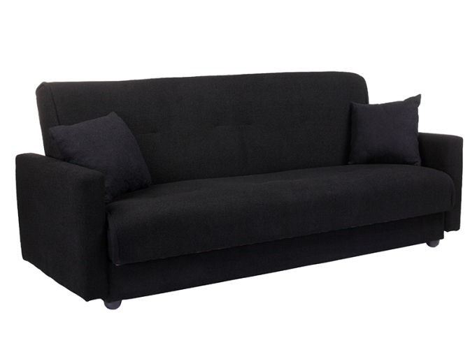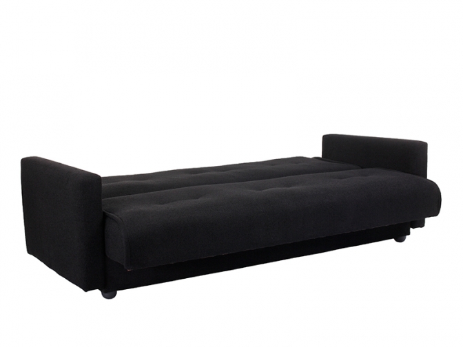 Диван книжка Милан Астра черный прекрасно подойдет для интерьера в стиле городская классика, минимализм или лофт. Очень удобный диван с прямыми подлокотниками обеспечит отличный отдых днем, на ночь можно быстро разложить кровать, используя механизм «книжка». В качестве наполнителя установлен блок из упругого материала ППУ. Для белья оборудован большой ящик, декоративные подушки или изготовление в другом размере доступны за отдельную плату.